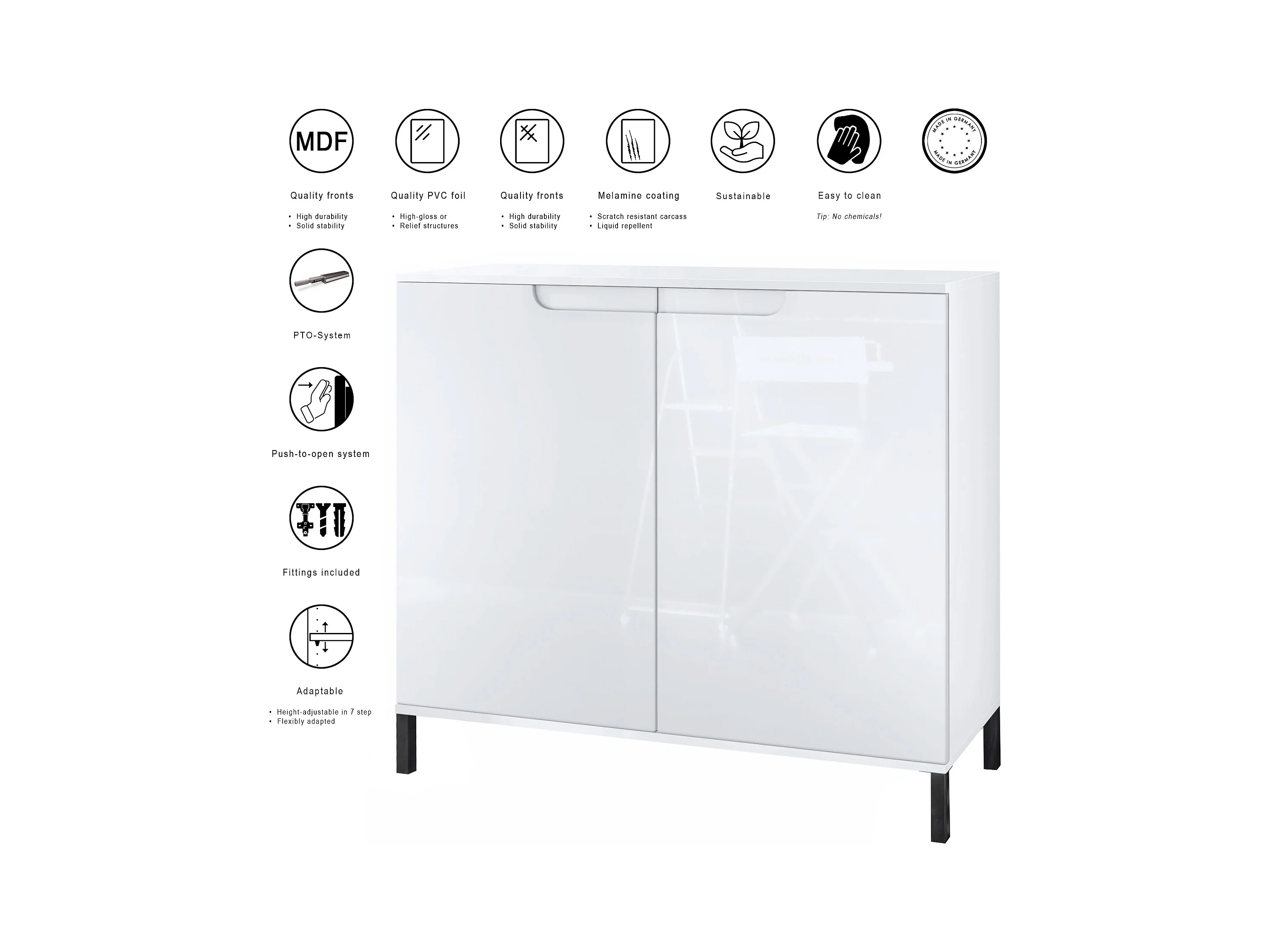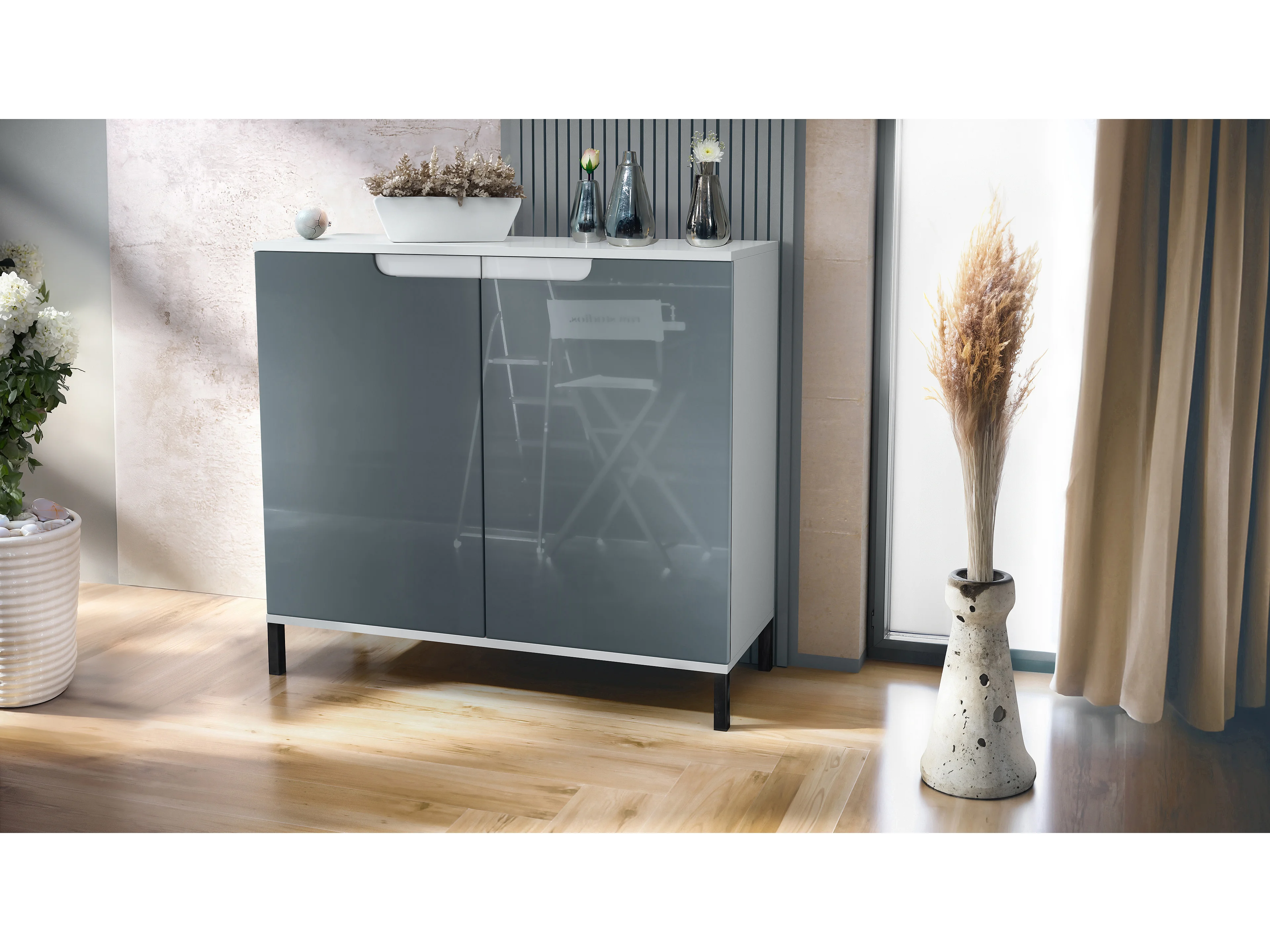 Commode Sylt V3, Buffet de Cuisine Moderne avec 2 Grandes Portes blanc mat / gris haute brillance (92,5 x 83.5 x 35)