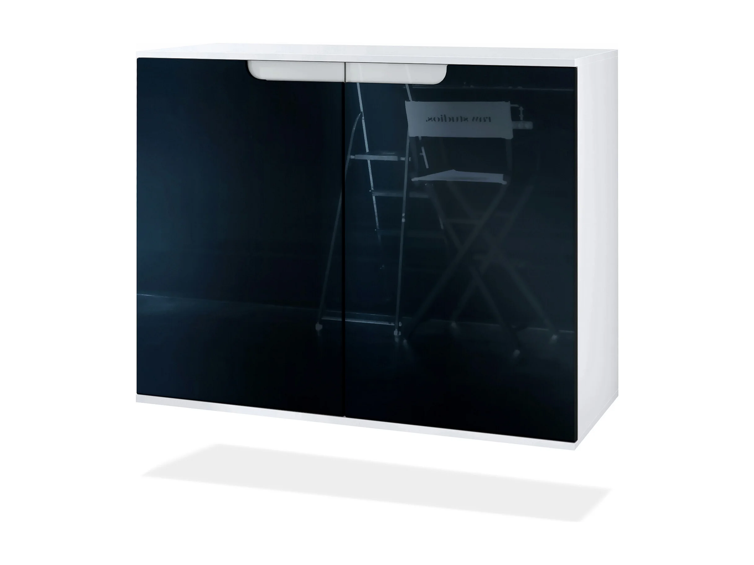 Commode Sylt V3, Buffet de Cuisine Moderne avec 2 Grandes Portes blanc mat / noir haute brillance (92,5 x 73.5 x 35)