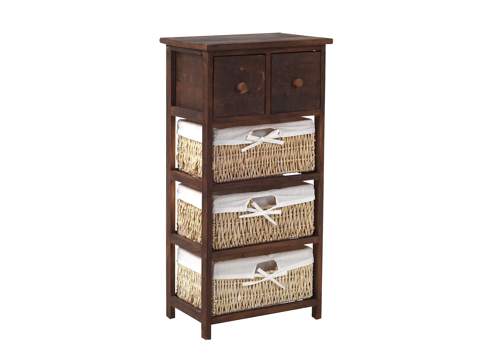 Commode Table De Chevet 5 Tiroirs Bois Marron Country 80x40x27