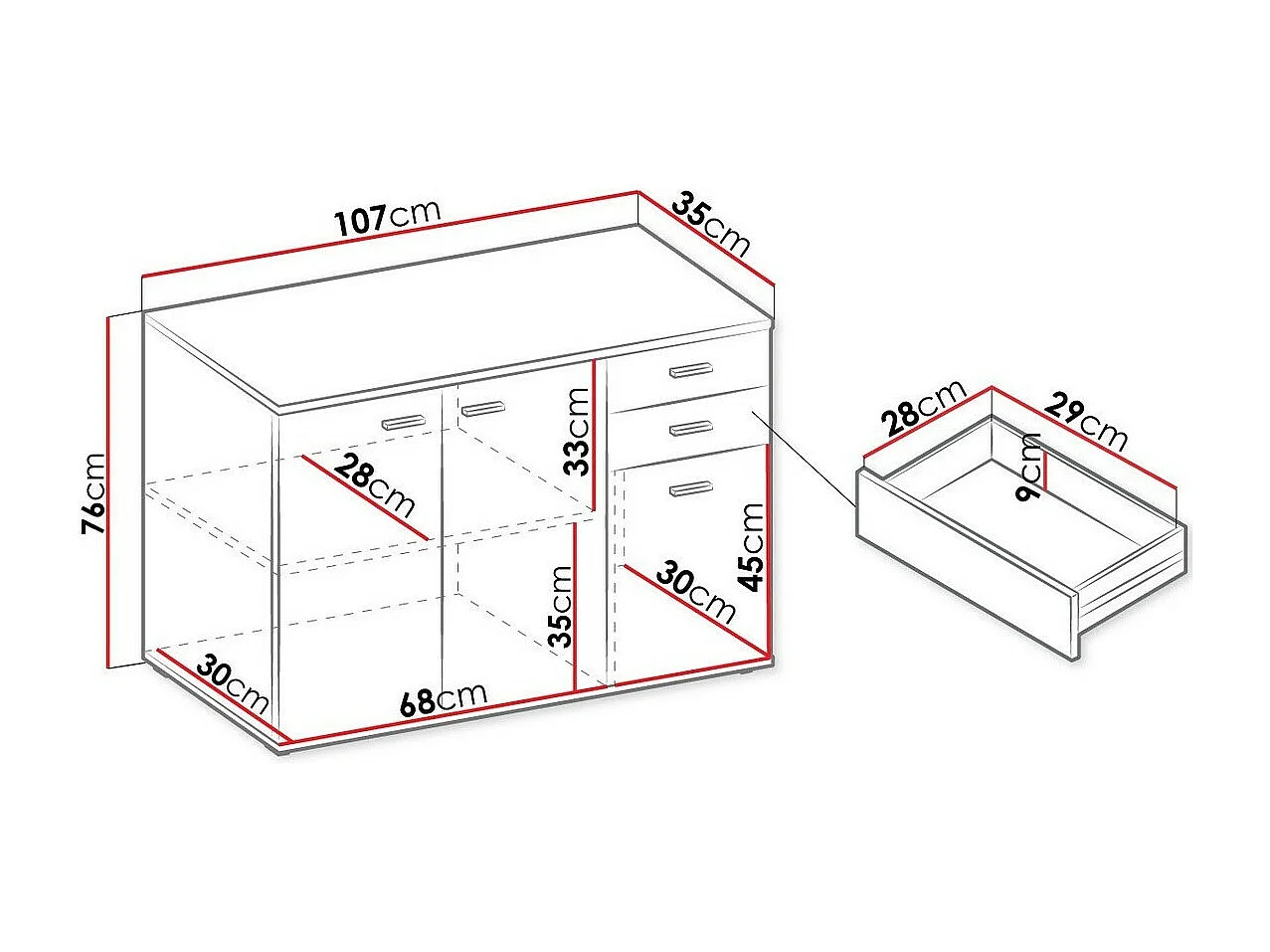 Commode Tucson 132, Blanc, Avec tiroirs et portes, Nombre de tiroirs: 2, 76x107x35cm
