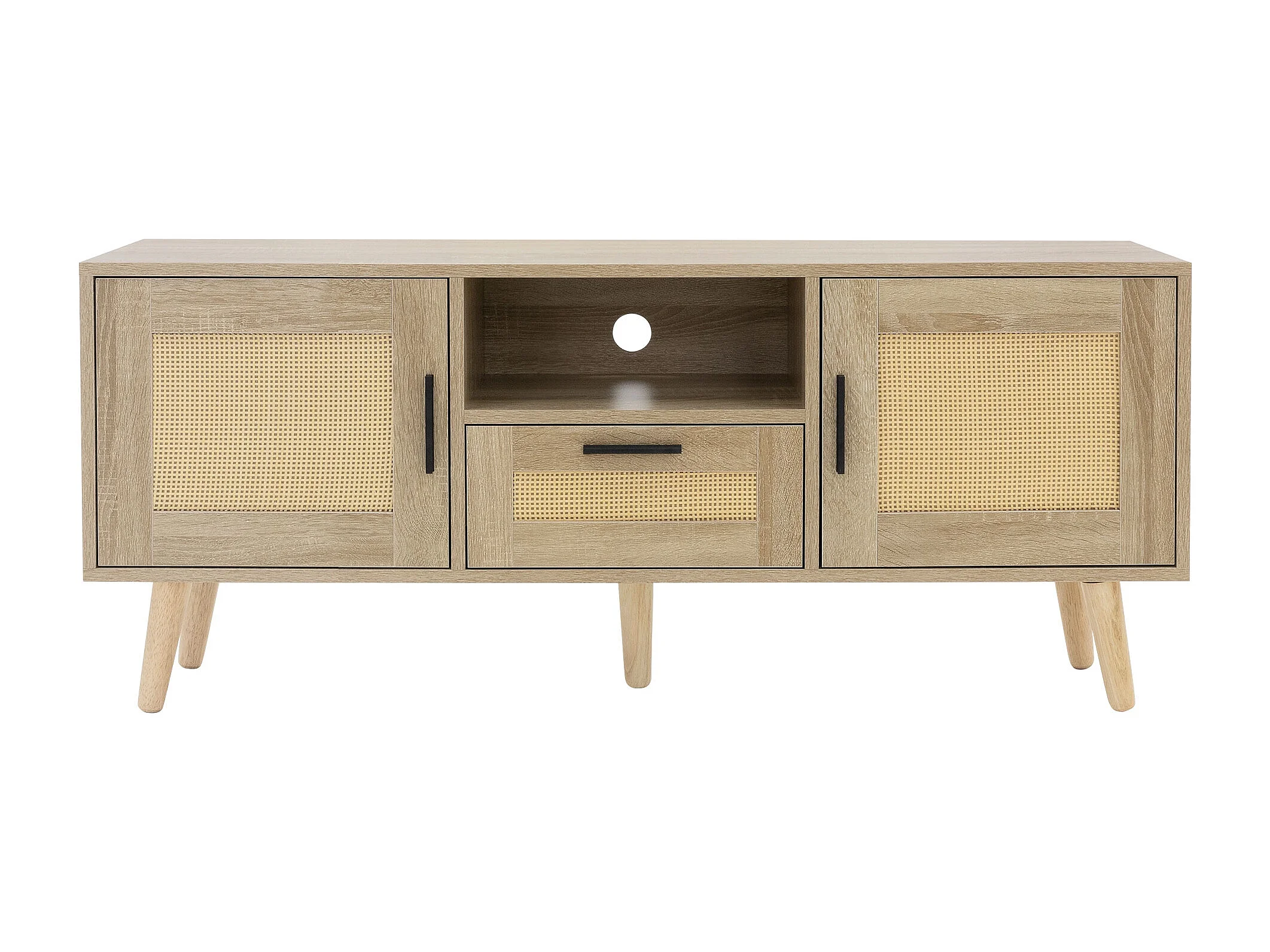 Commode TV 120 cm armoire de télévision en rotin effect chêne pieds bois massif
