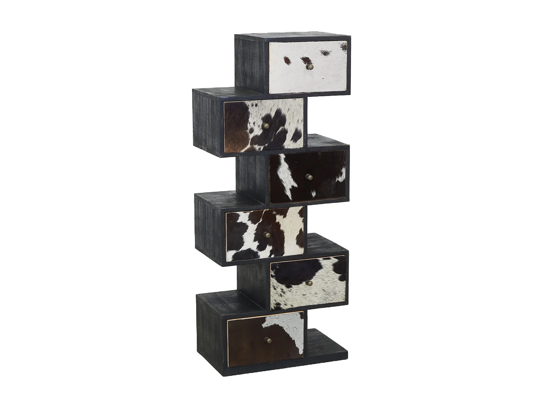Commode Zigzag en manguier et peau de vache noire et blanche