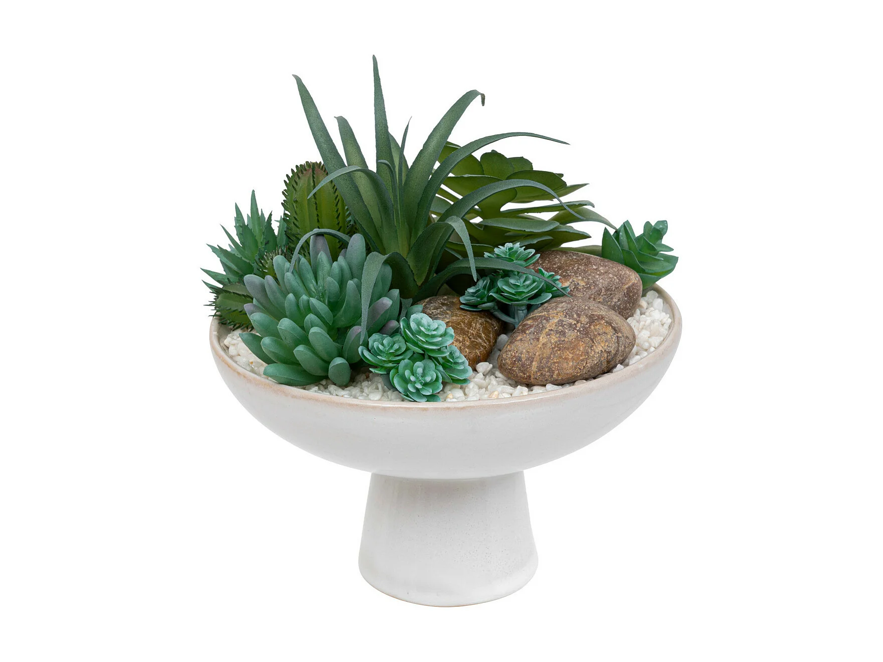Compo Plantes grasses arificielles dans un pot en céramique émaillée D 19 x H 20 cm