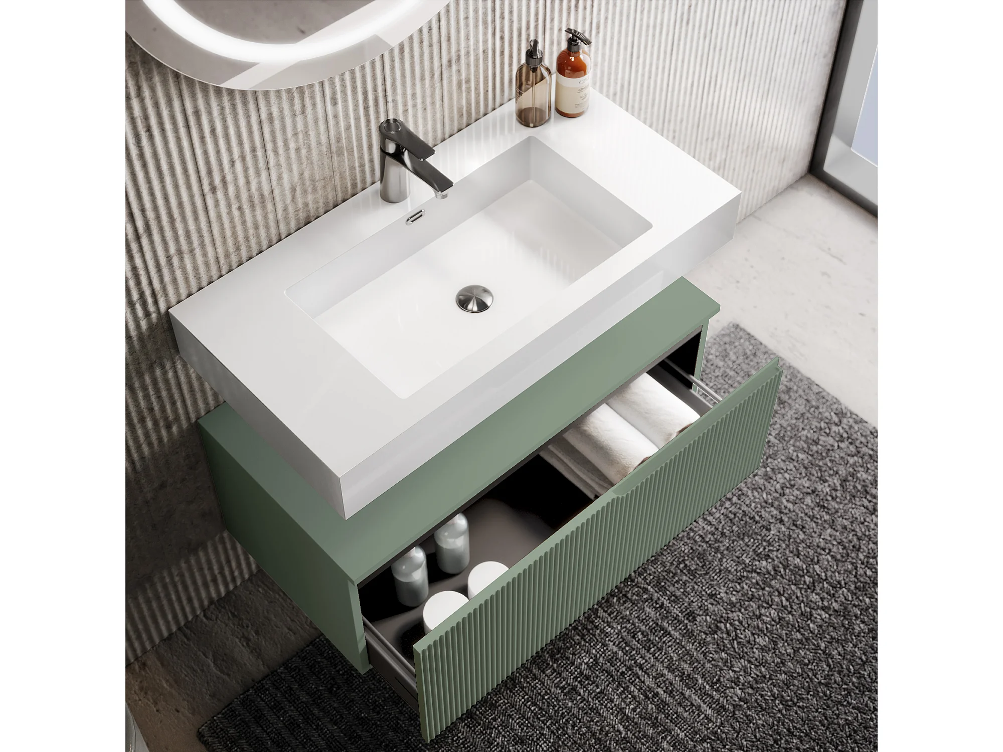 Composition 3 pieces VENERE blanc brillant/vert sage