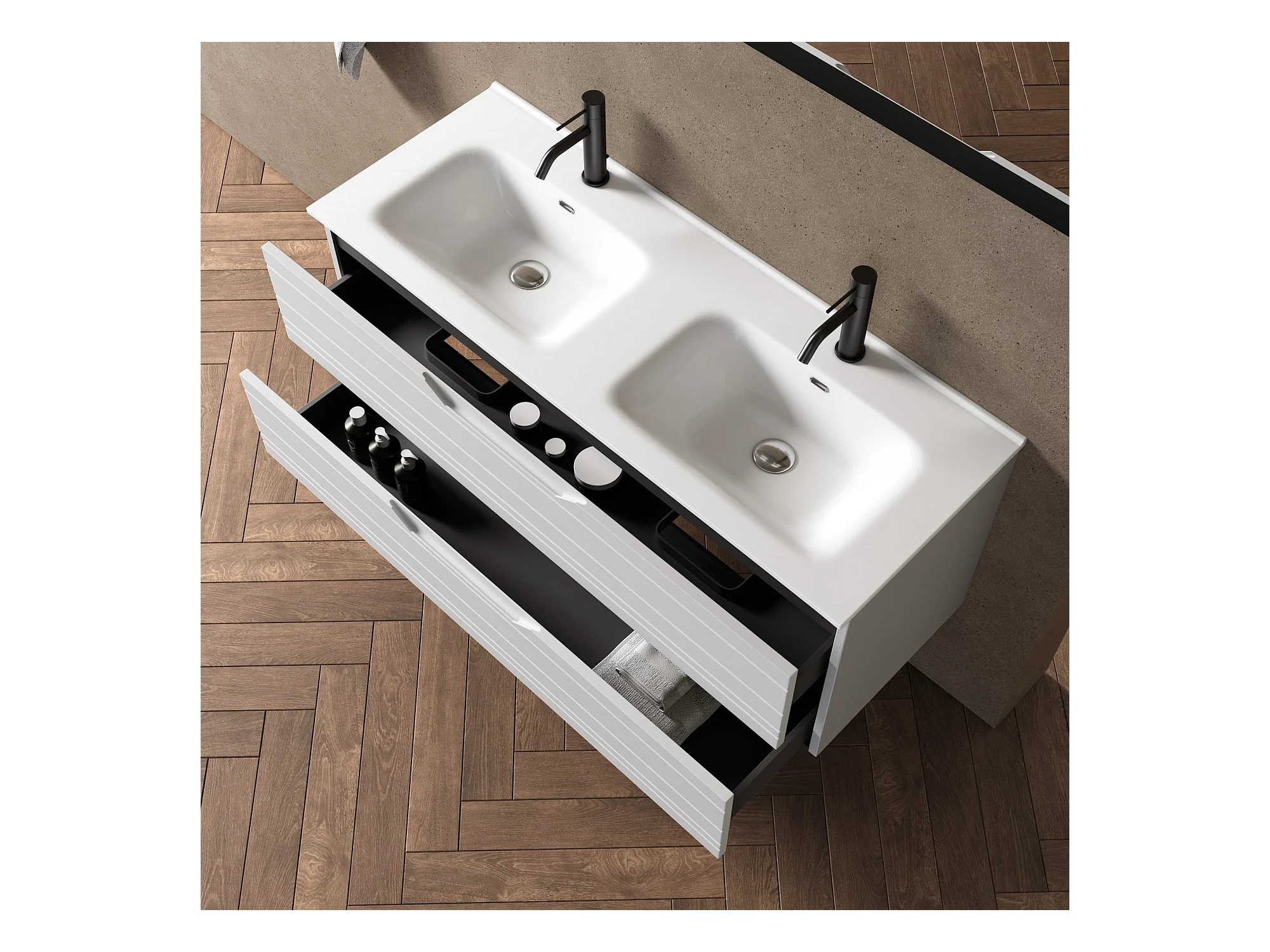 Composition double vasque 5 pièces SOLMIRA blanc mat