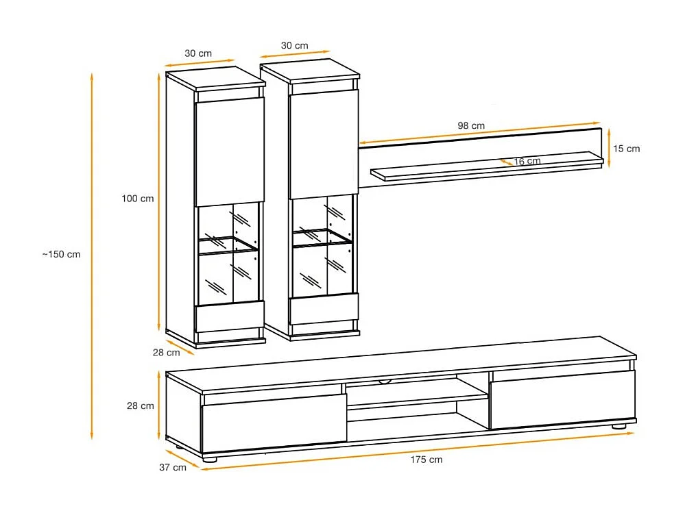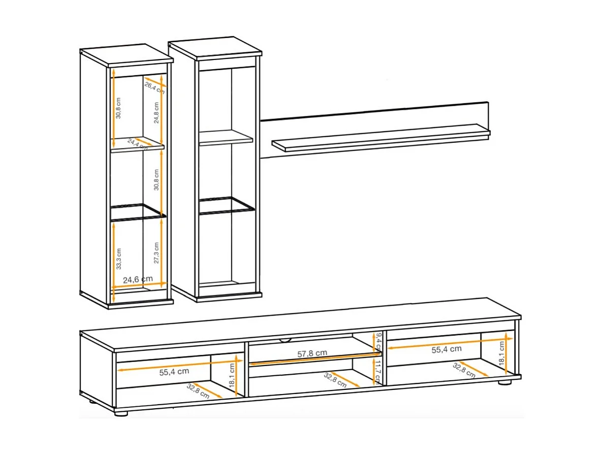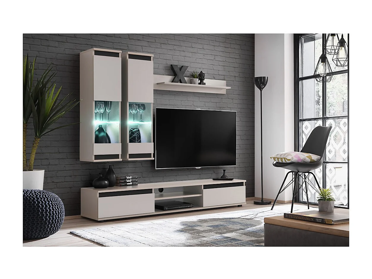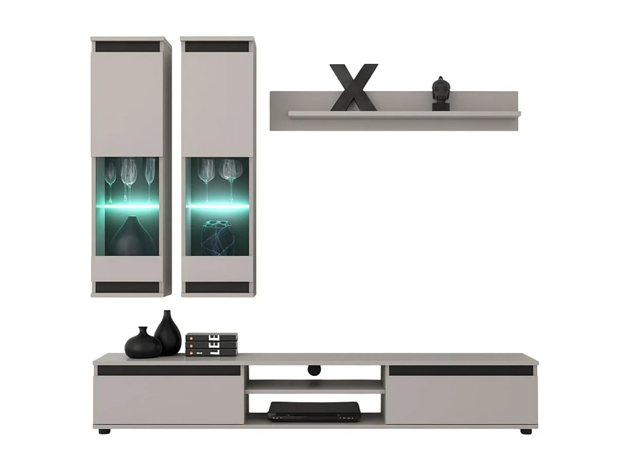 Composition murale DOMO – Meuble TV, 2 vitrines suspendues et 1 étagère murale – Cachemire