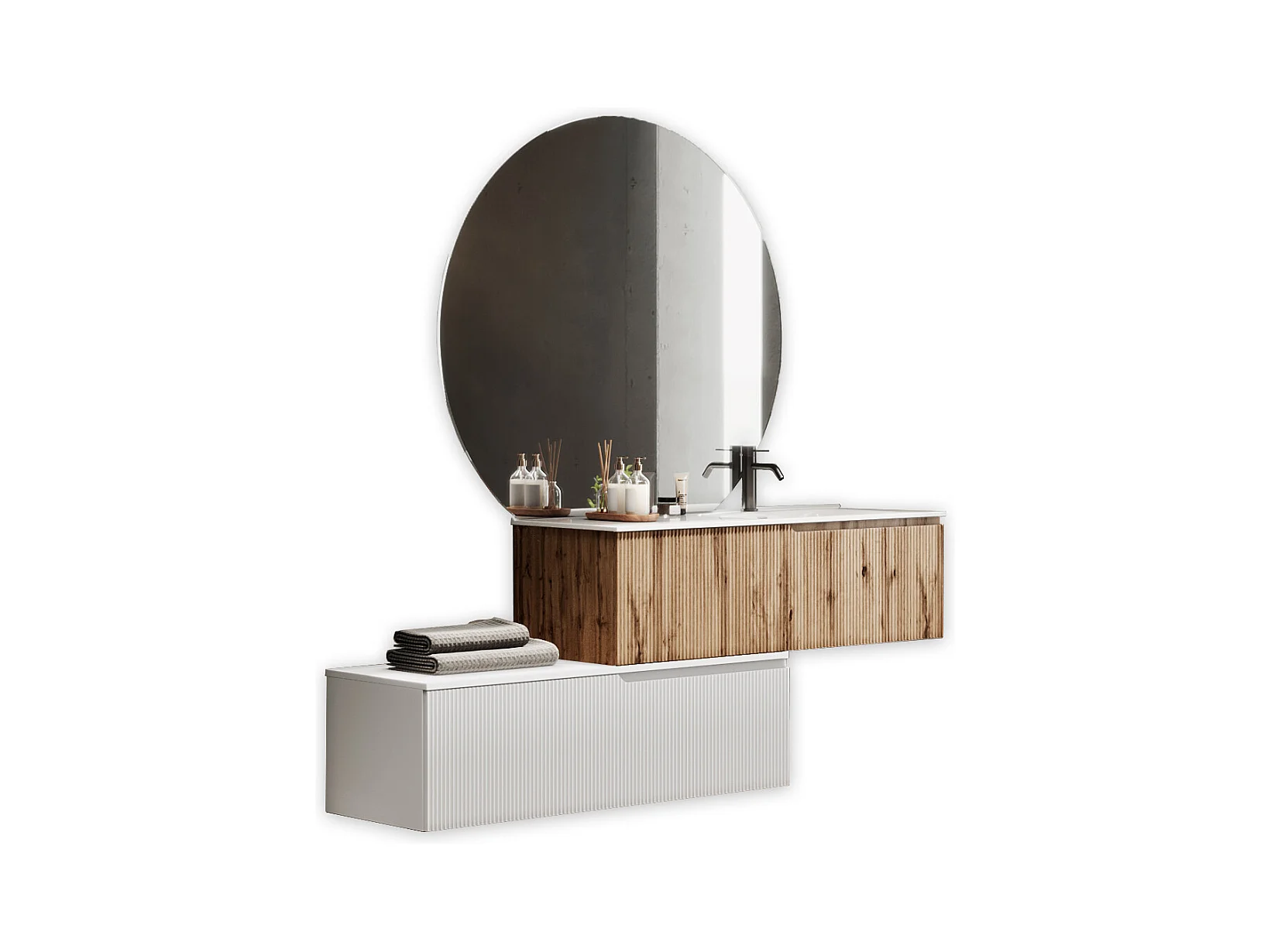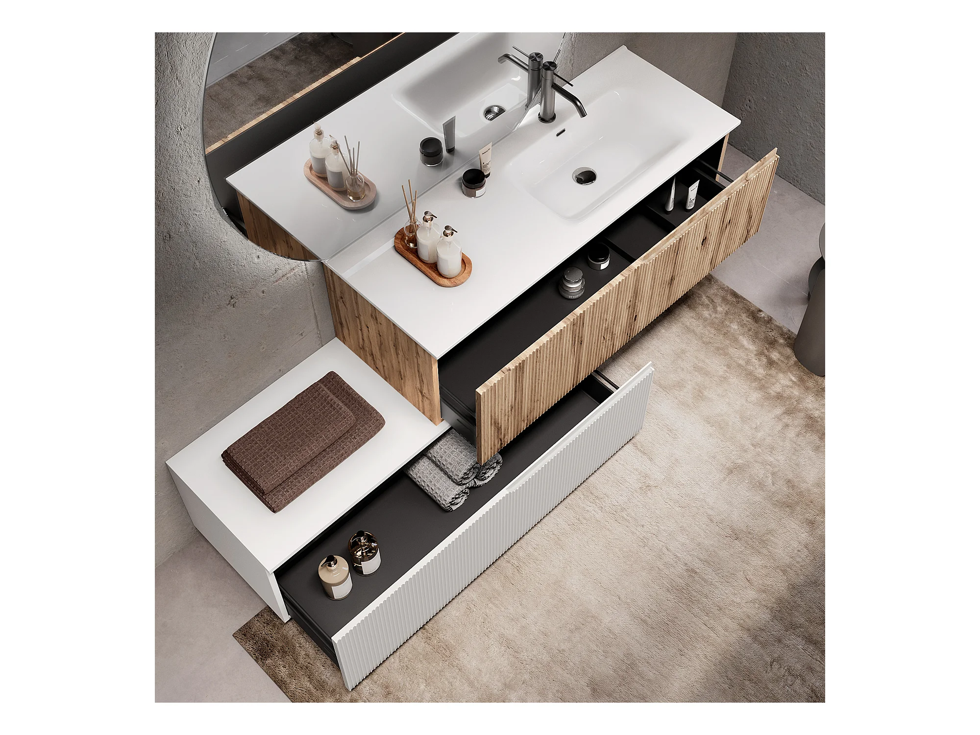 Composition vasque droite 4 pieces VENERE chène/blanc mat