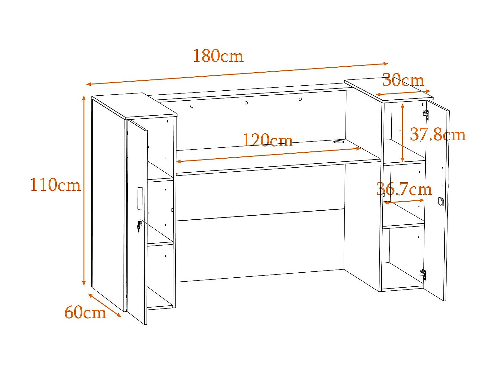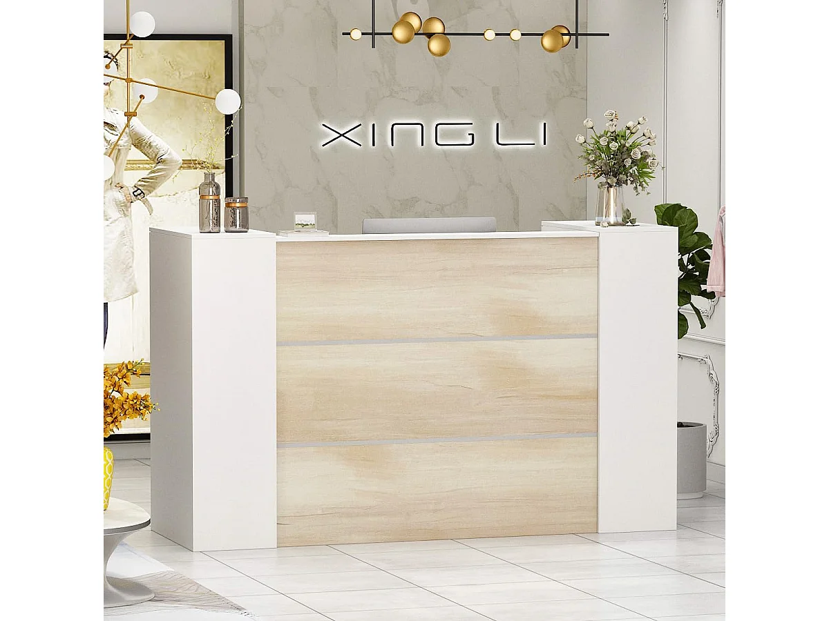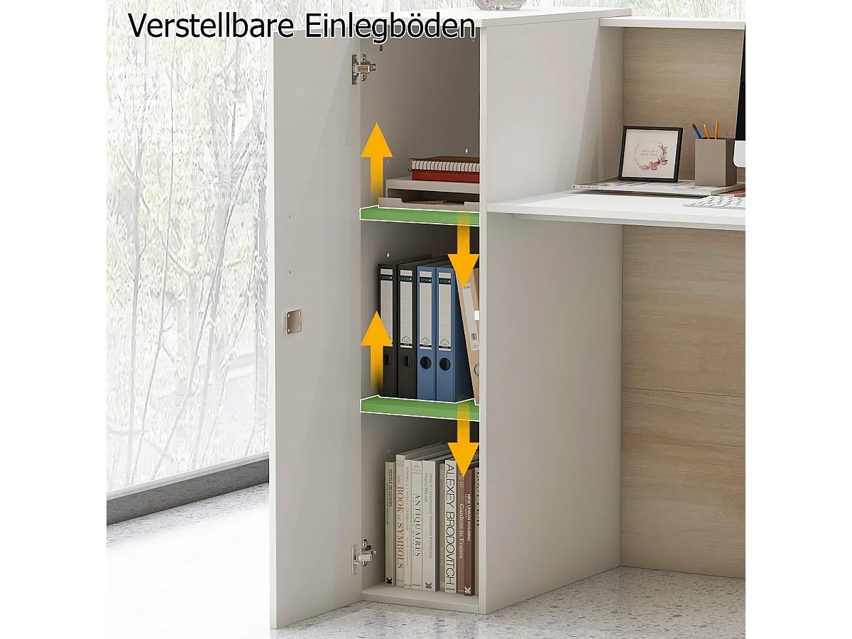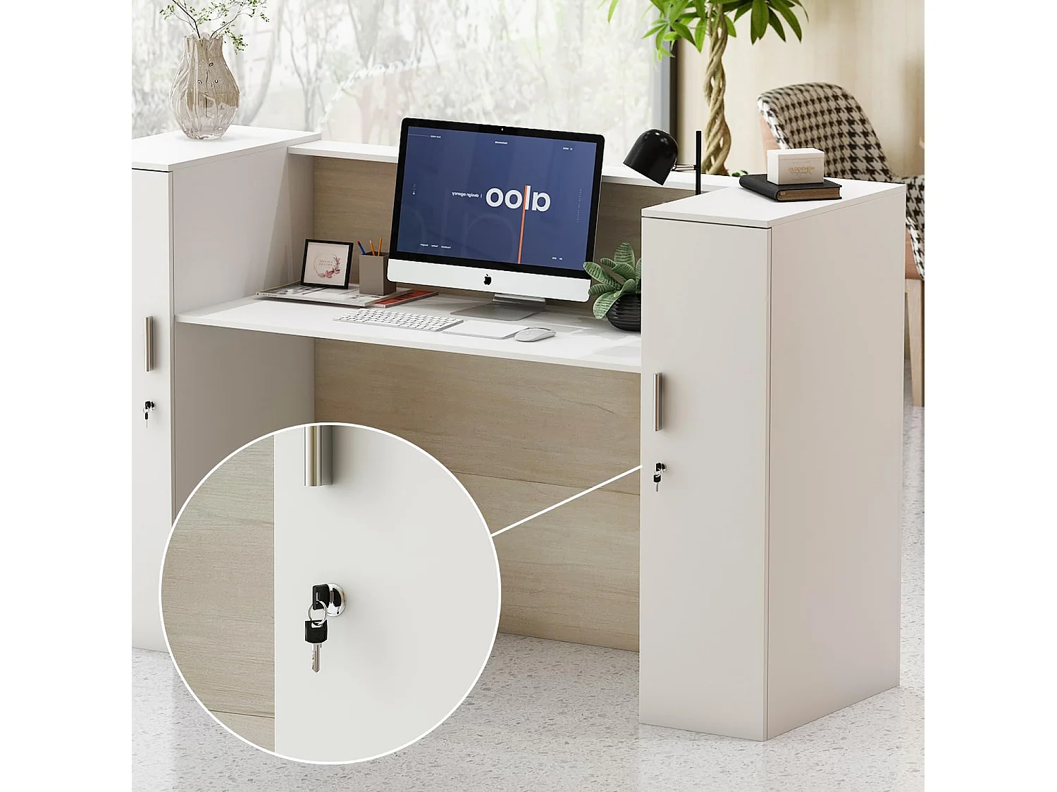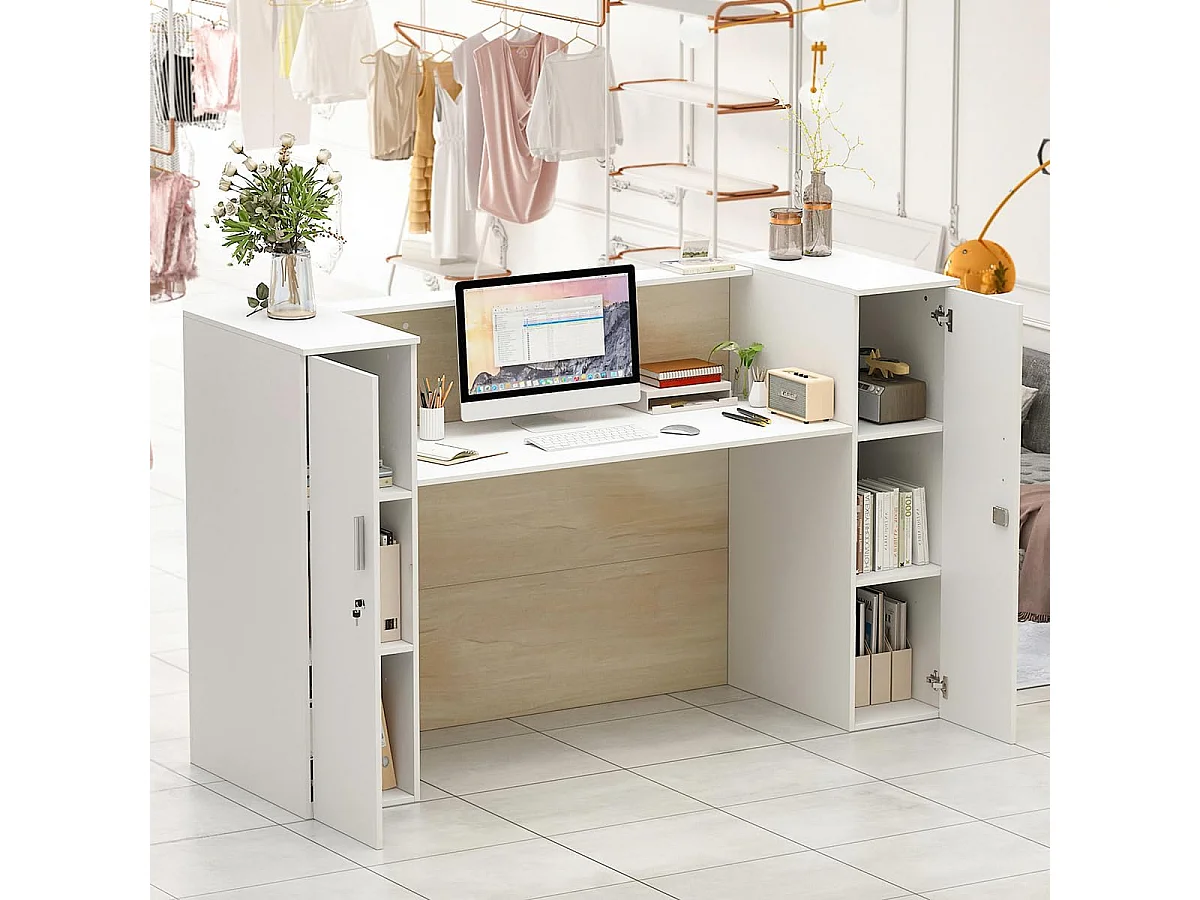 Comptoir de réception avec compartiments ouverts Tiroir verrouillable étagères Salon Bureau Bois&Blanc 180x60x110cm