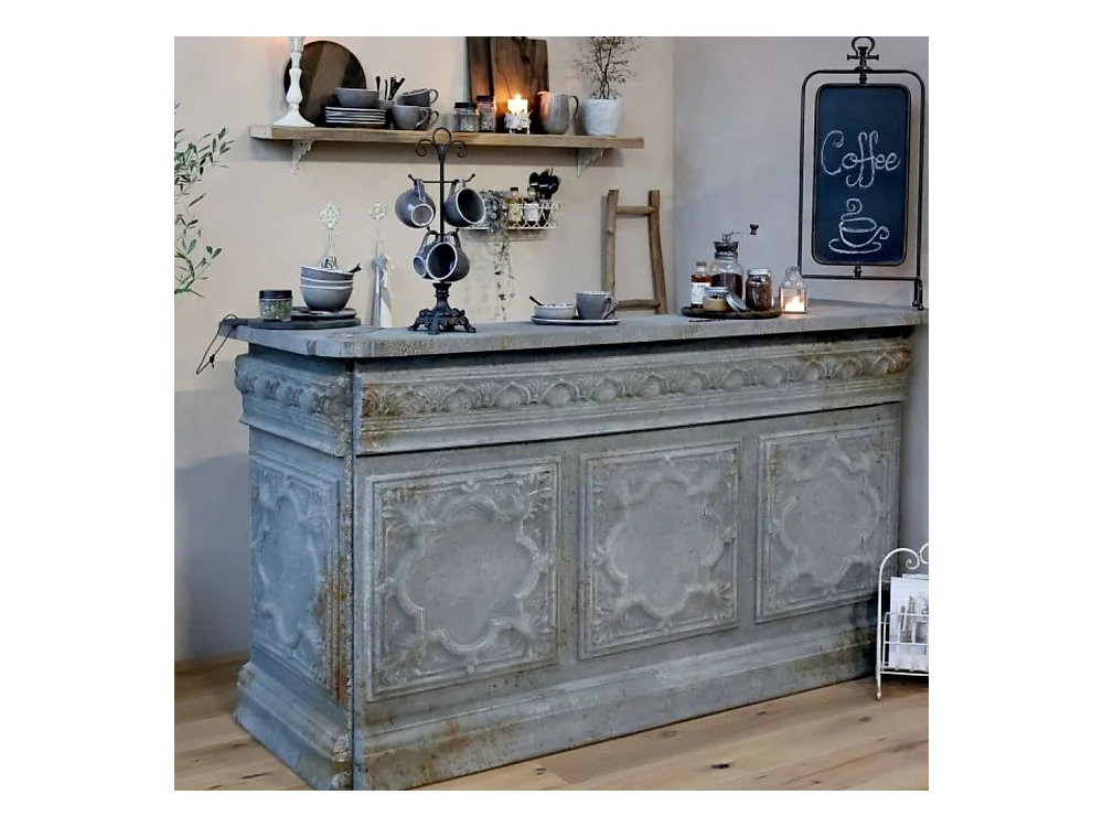 Comptoir vintage avec étagère en fer gris antique 217 x 76 x 118 cm