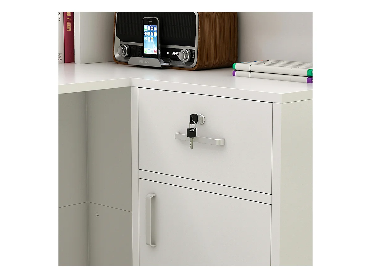Comptoirs de réception avec compartiments ouverts étagères Tiroir verrouillable Salon Bureau Blanc 142x82x123cm