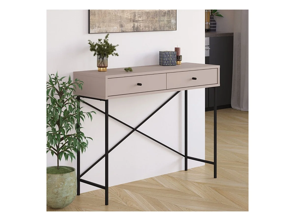 Console 2 Tiroirs Couleur moka et Pieds en Métal L110 cm - Titan