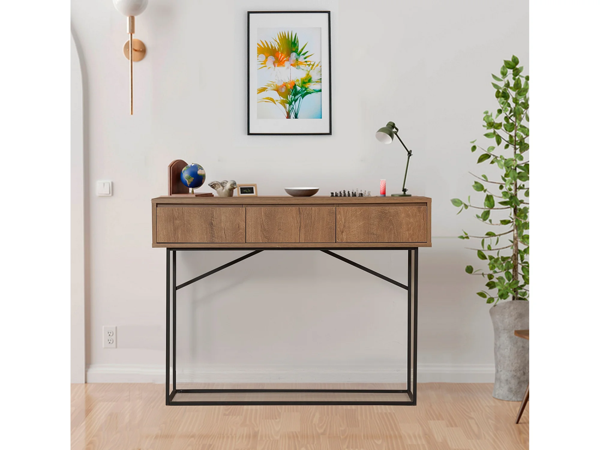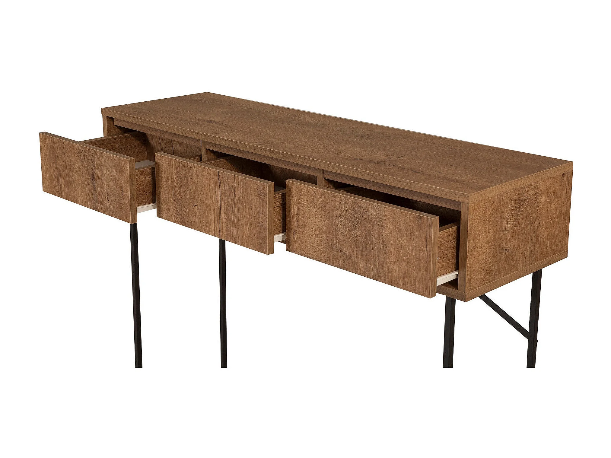 Console 3 tiroirs Stela style industriel Métal Noir et Bois Naturel
