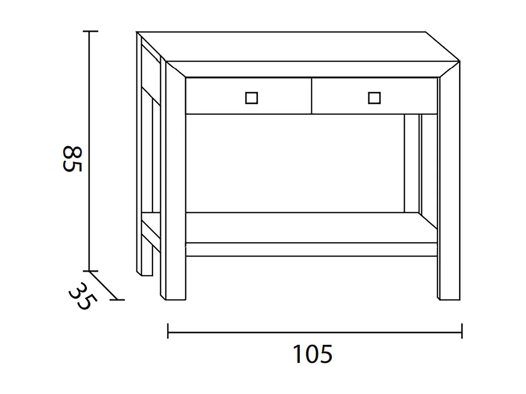 Console avec 2 tiroirs et 1 étagère en pin massif coloris cerisier - L. 105 x P. 35 x H. 85 cm