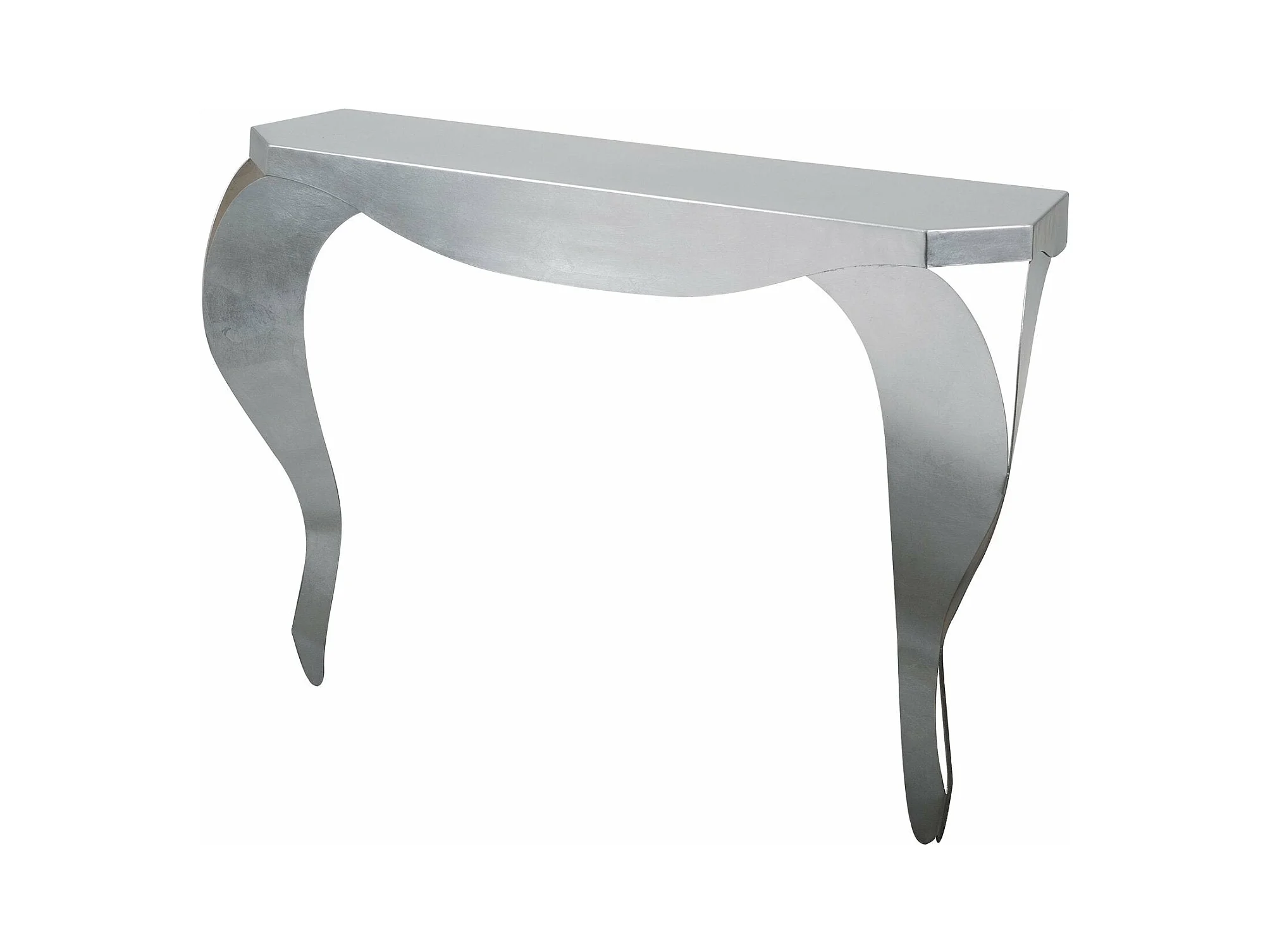 Console Chippendale 90x33x77 cm en fer argenté, design classique perforé pour meuble entrée moderne, Made in Italy