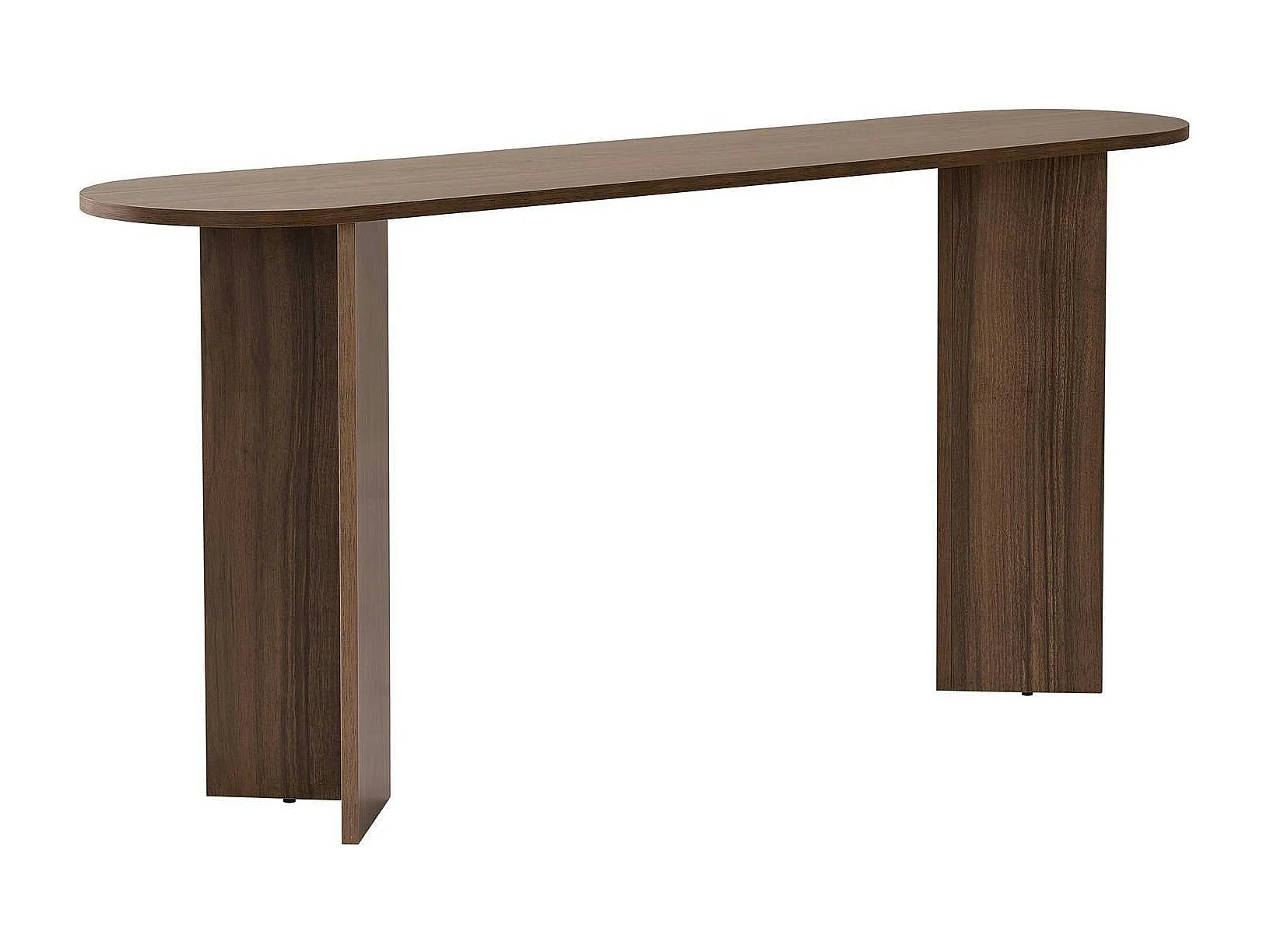 Console de salon ovale effet noyer foncé - pieds en V MARFA