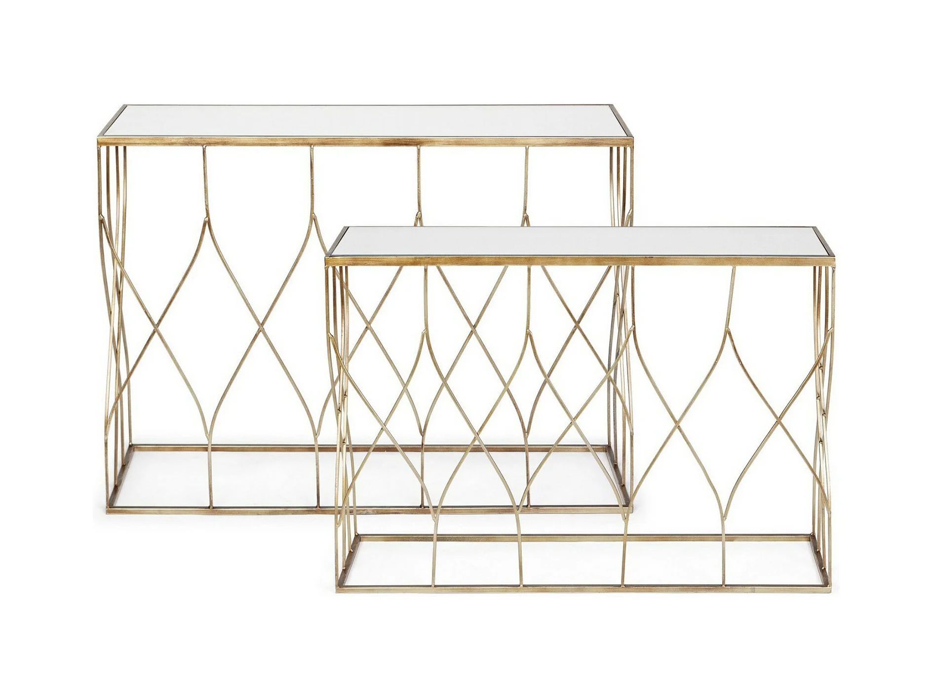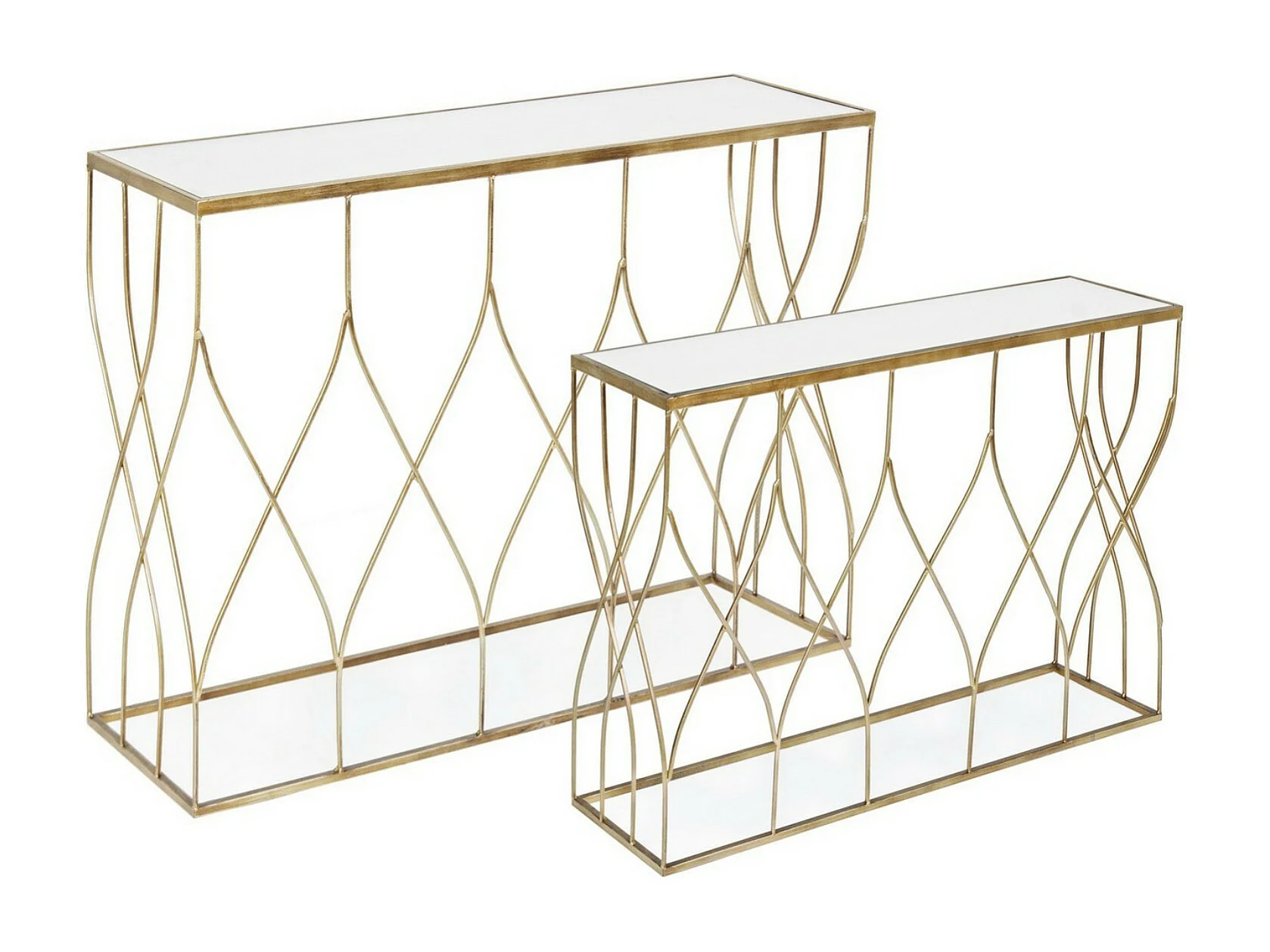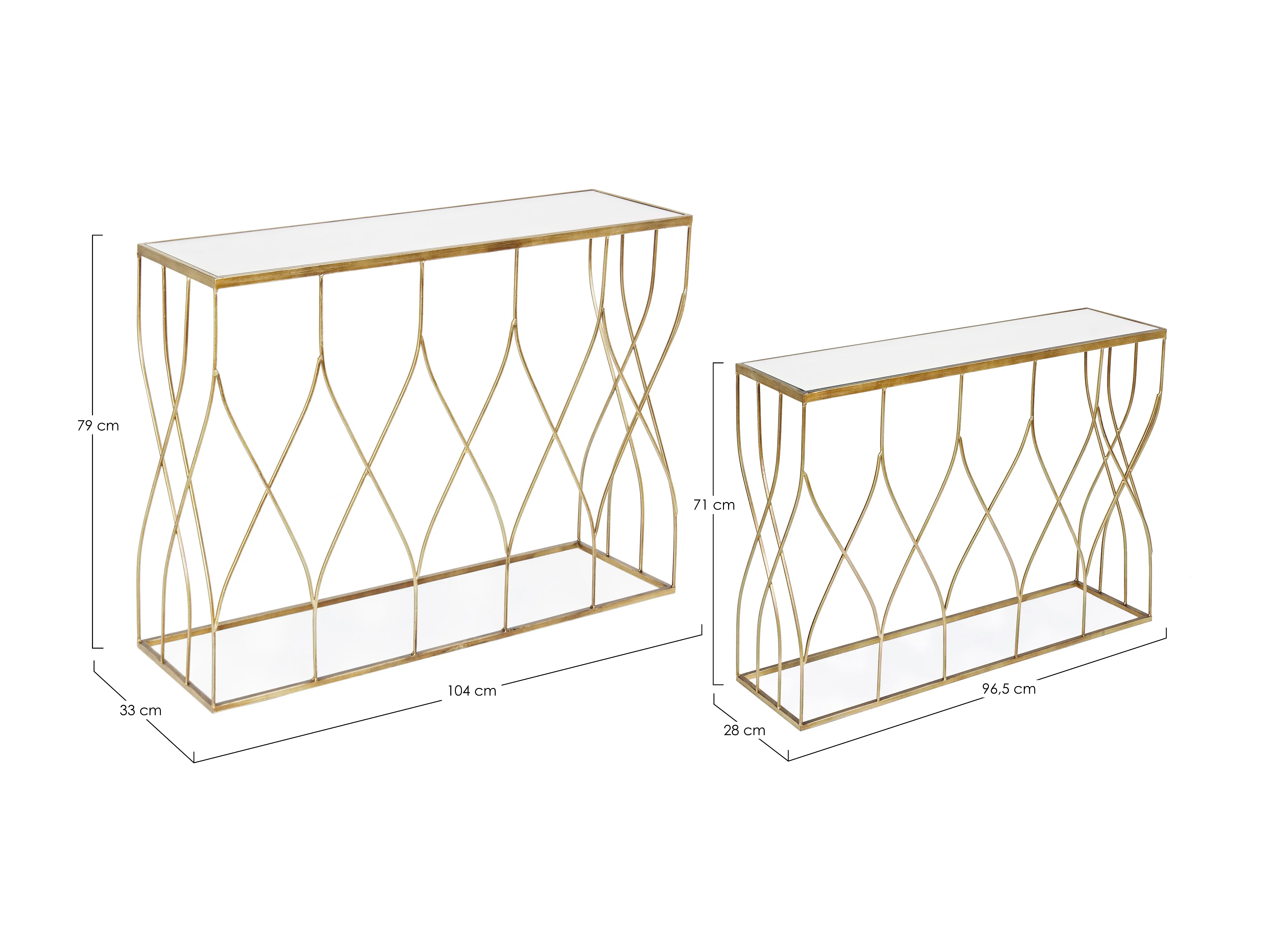 Console en acier doré et miroir Louanor - Lot de 2