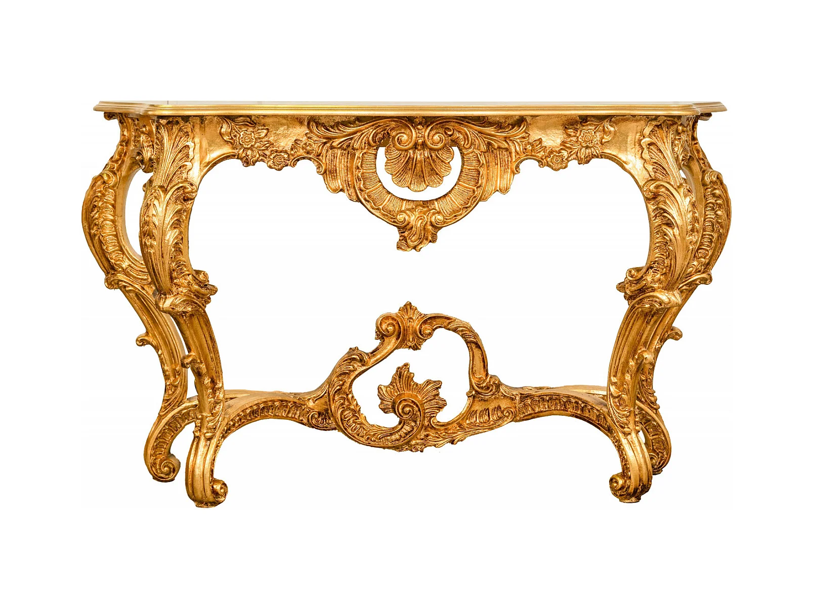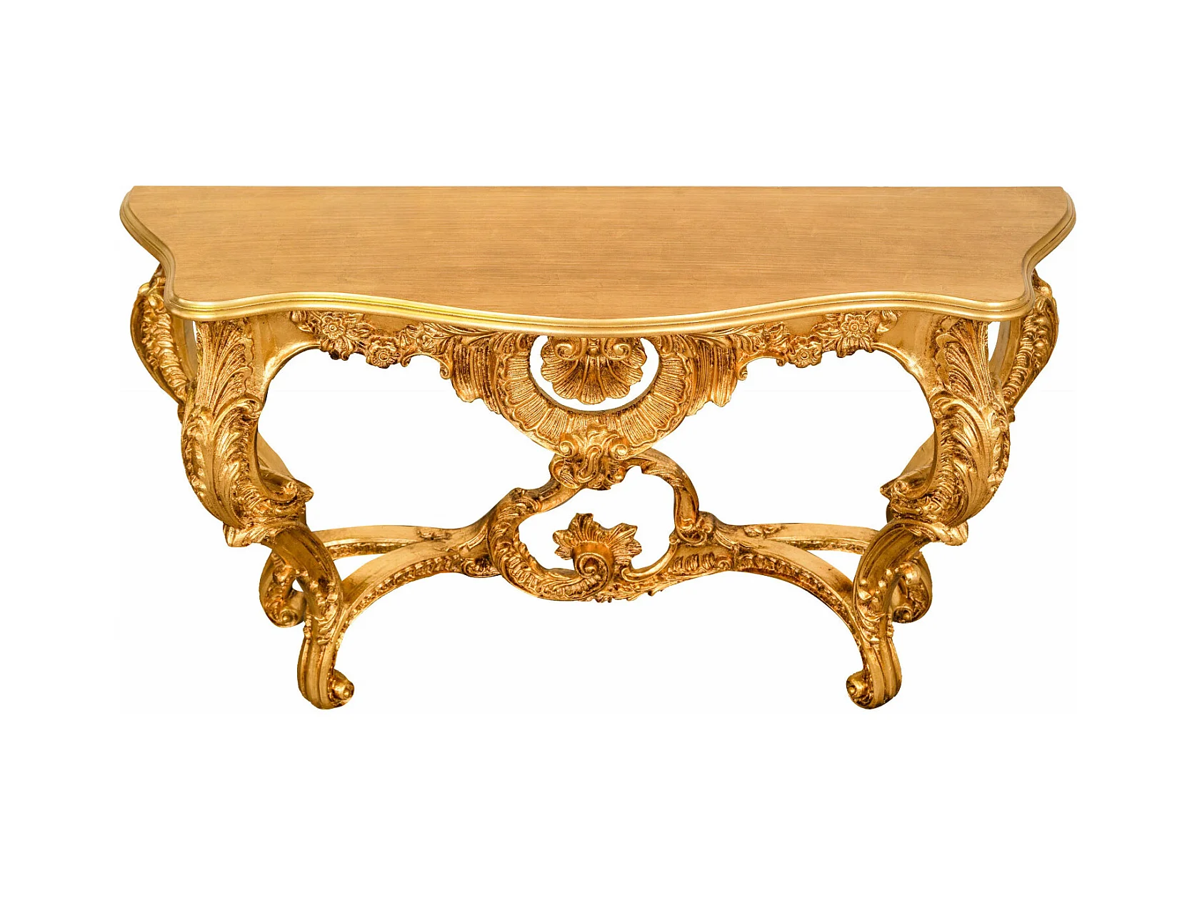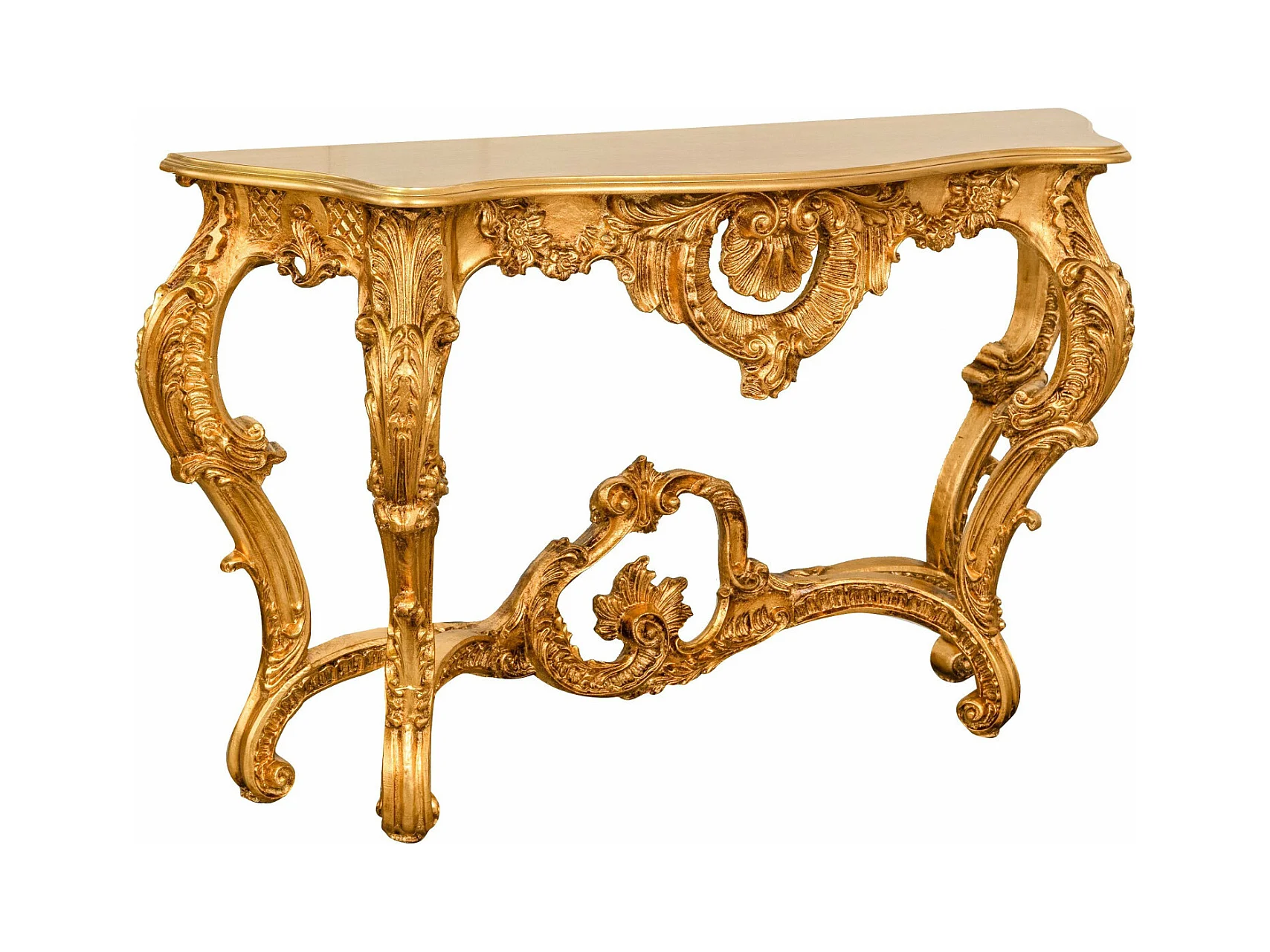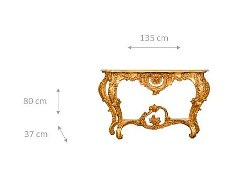 BISCOTTINI - Table console - Finition or antique - Table d'appoint - Console murale - Table de jardin - Table de chevet - Décoration vintage - 135x37x80 cm