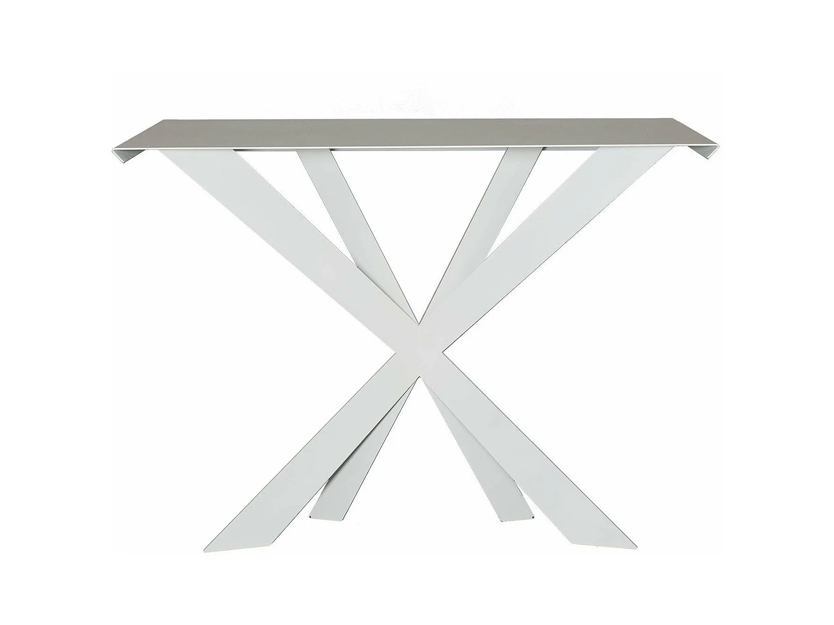 Console Exsodus Zeus 110x35x85 cm en fer peint blanc géométrique perforé moderne Meuble d'entrée ou de salon Fabriqué en Italie