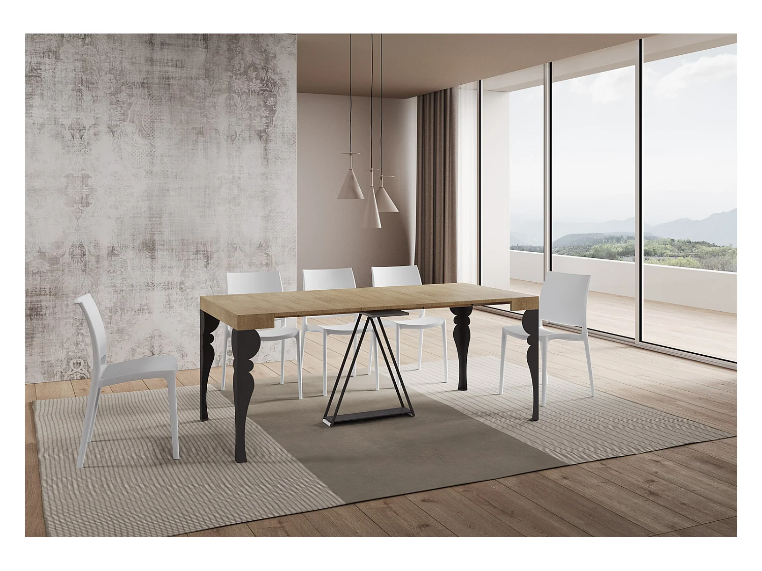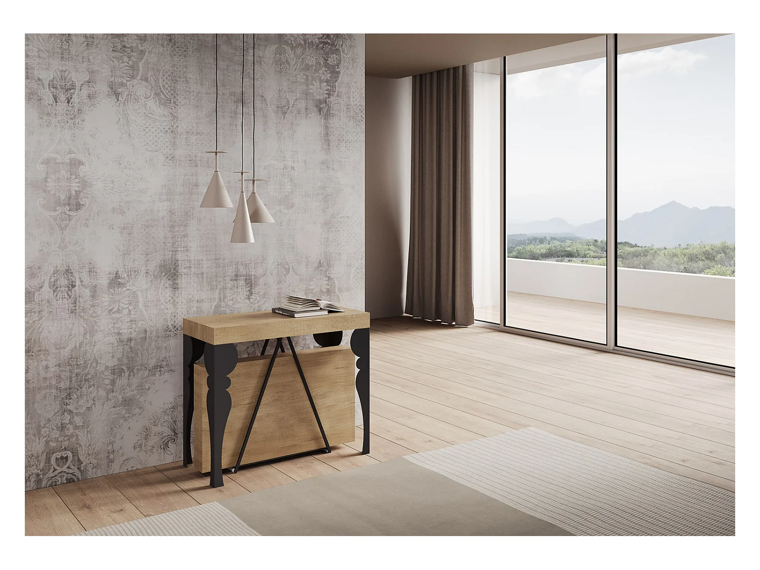 Console extensible 90x40/196 cm Riza Small chêne nature cadre anthracite