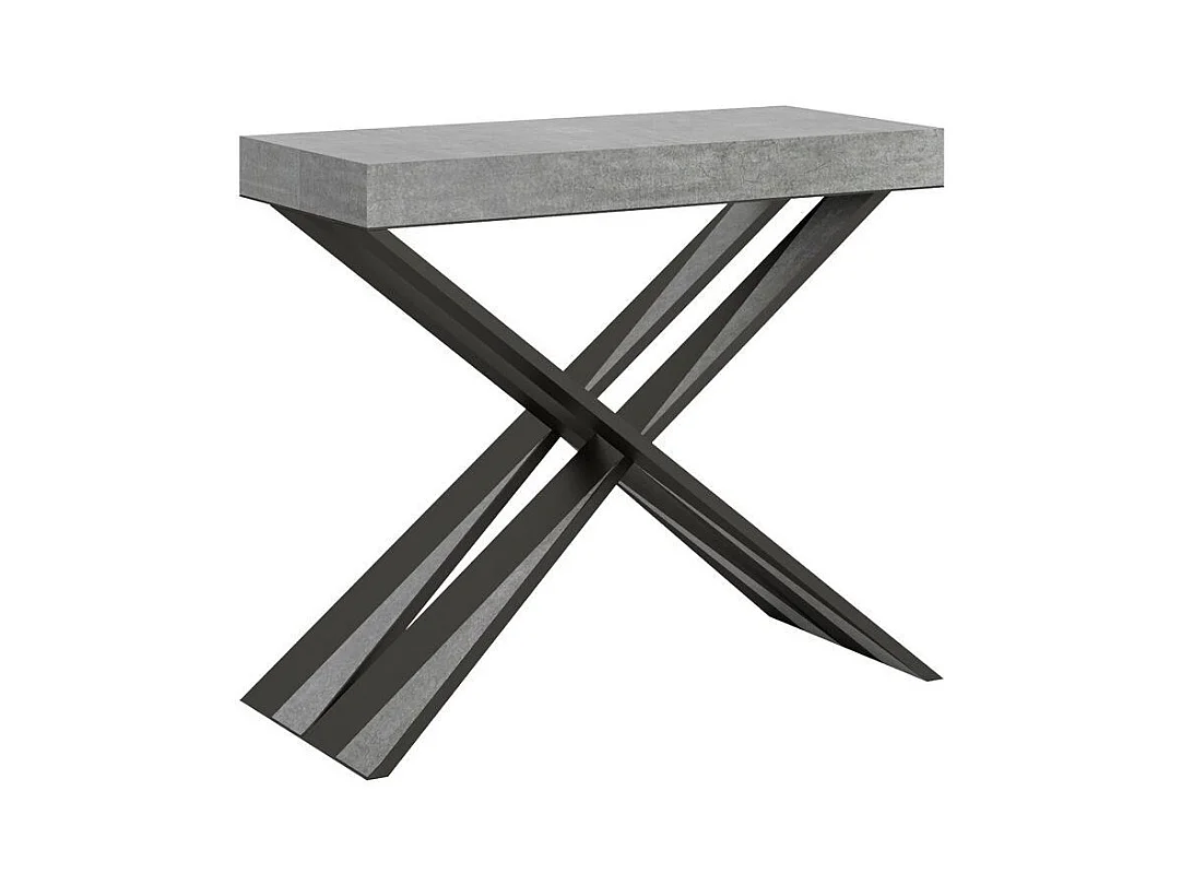 Console extensible bois pieds croisés anthracite Diago-Couleur Gris ciment-Sur roulettes-5 rallonges fines