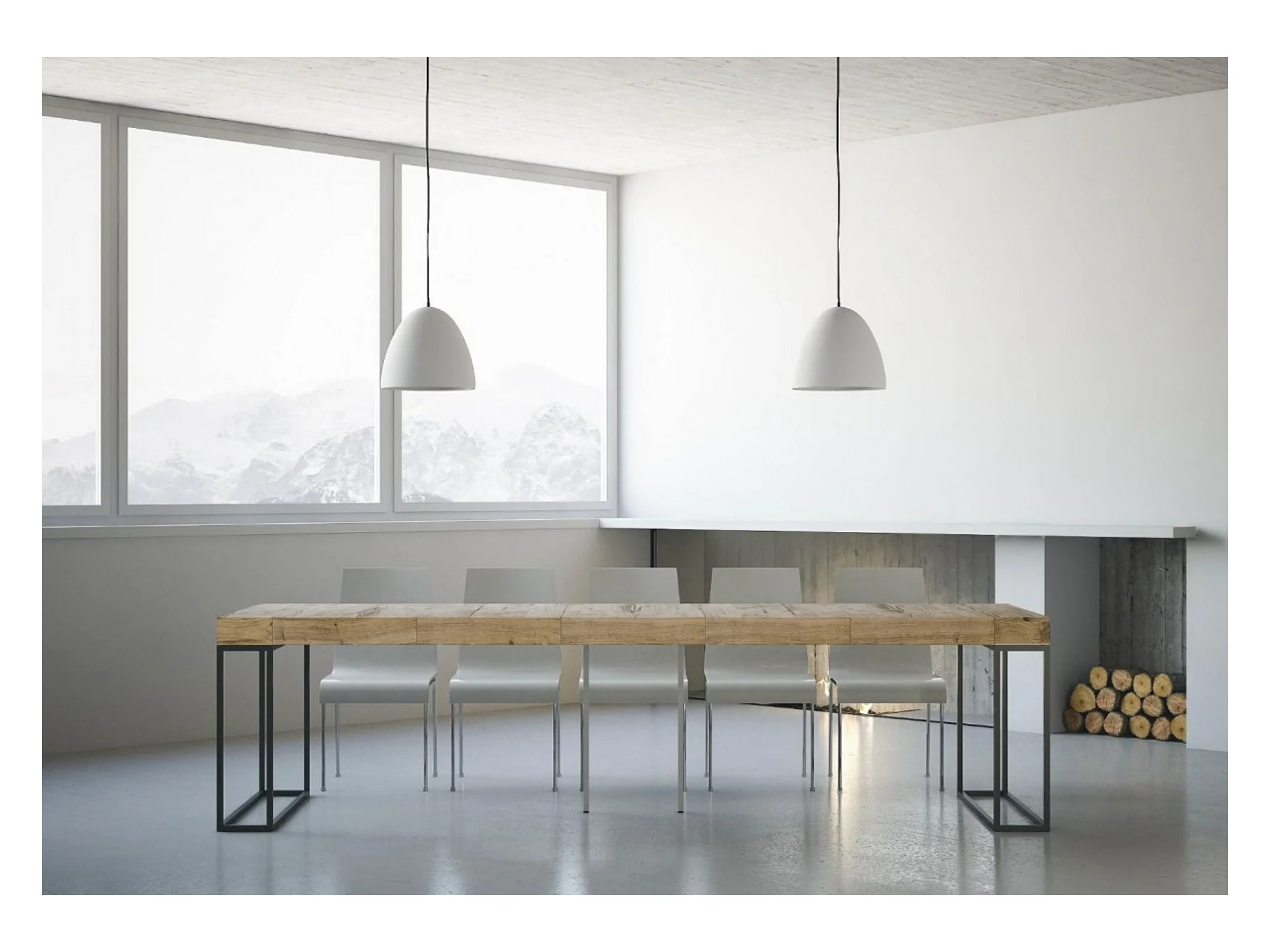 Console extensible bois et 3 pieds acier anthracite Epika-Couleur Gris ciment-4 pieds-5 rallonges épaisses