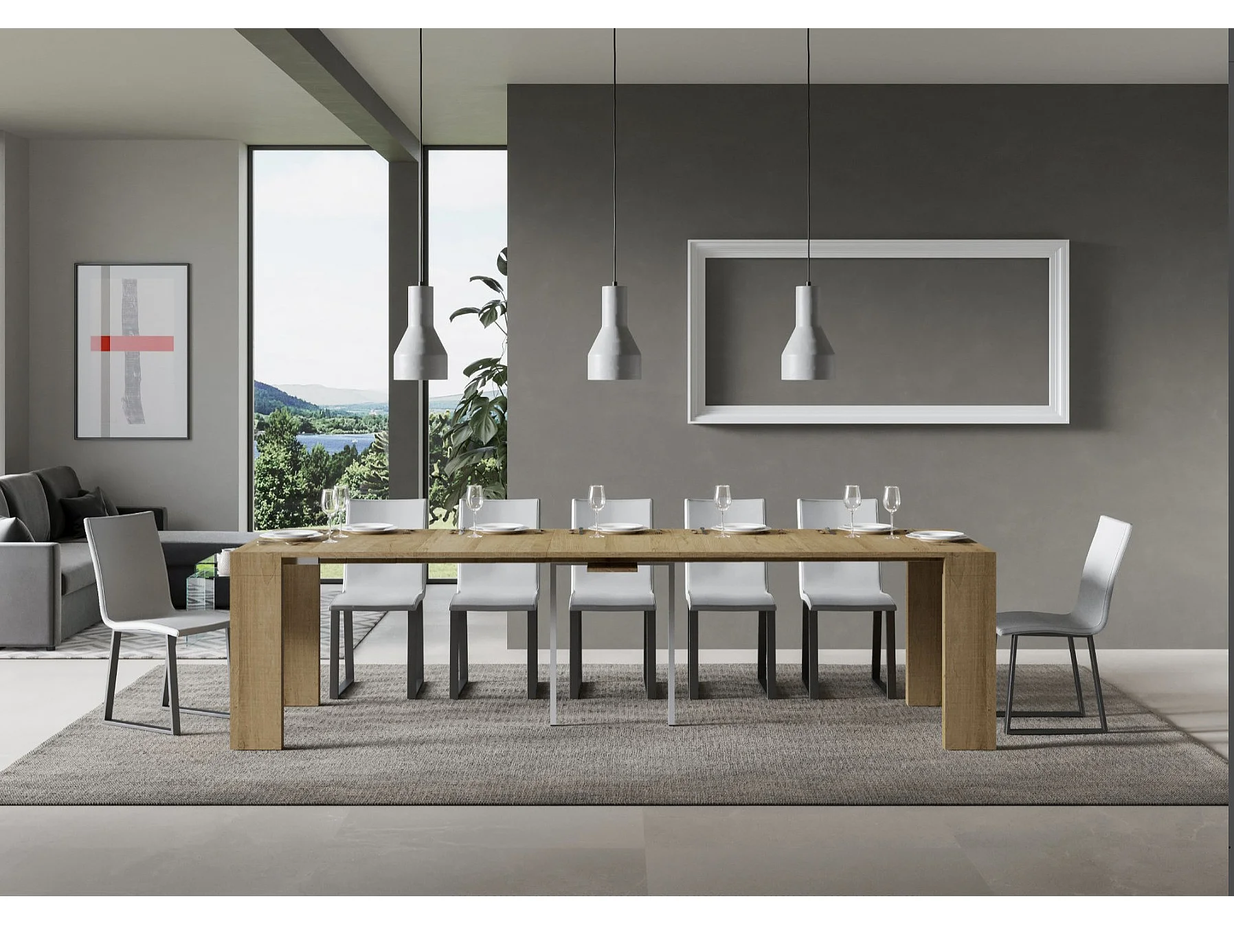 Console extensible en bois Ribo 90x40-196 ou 90x40-300-Couleur Marron-Support 4 pieds-5 rallonges