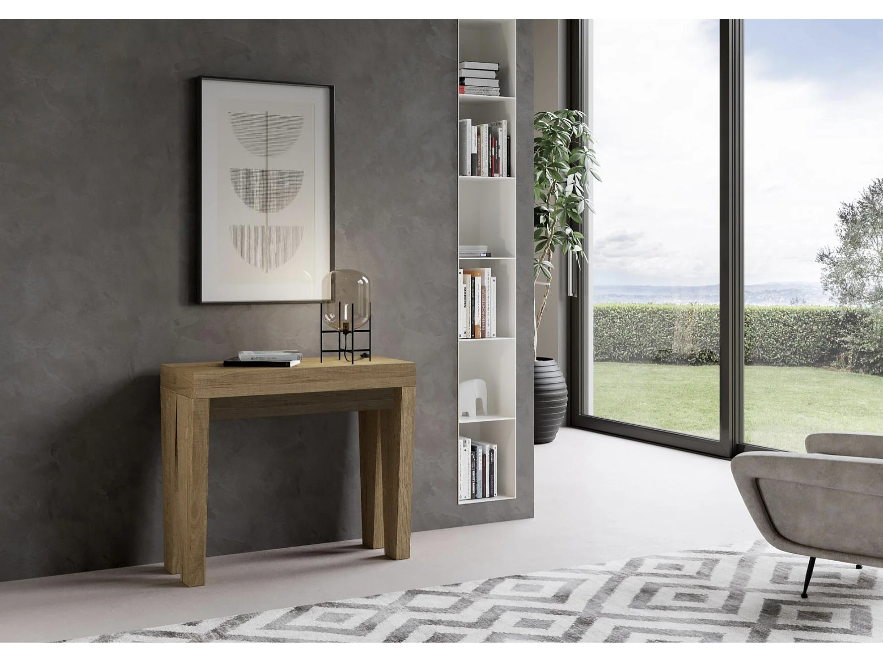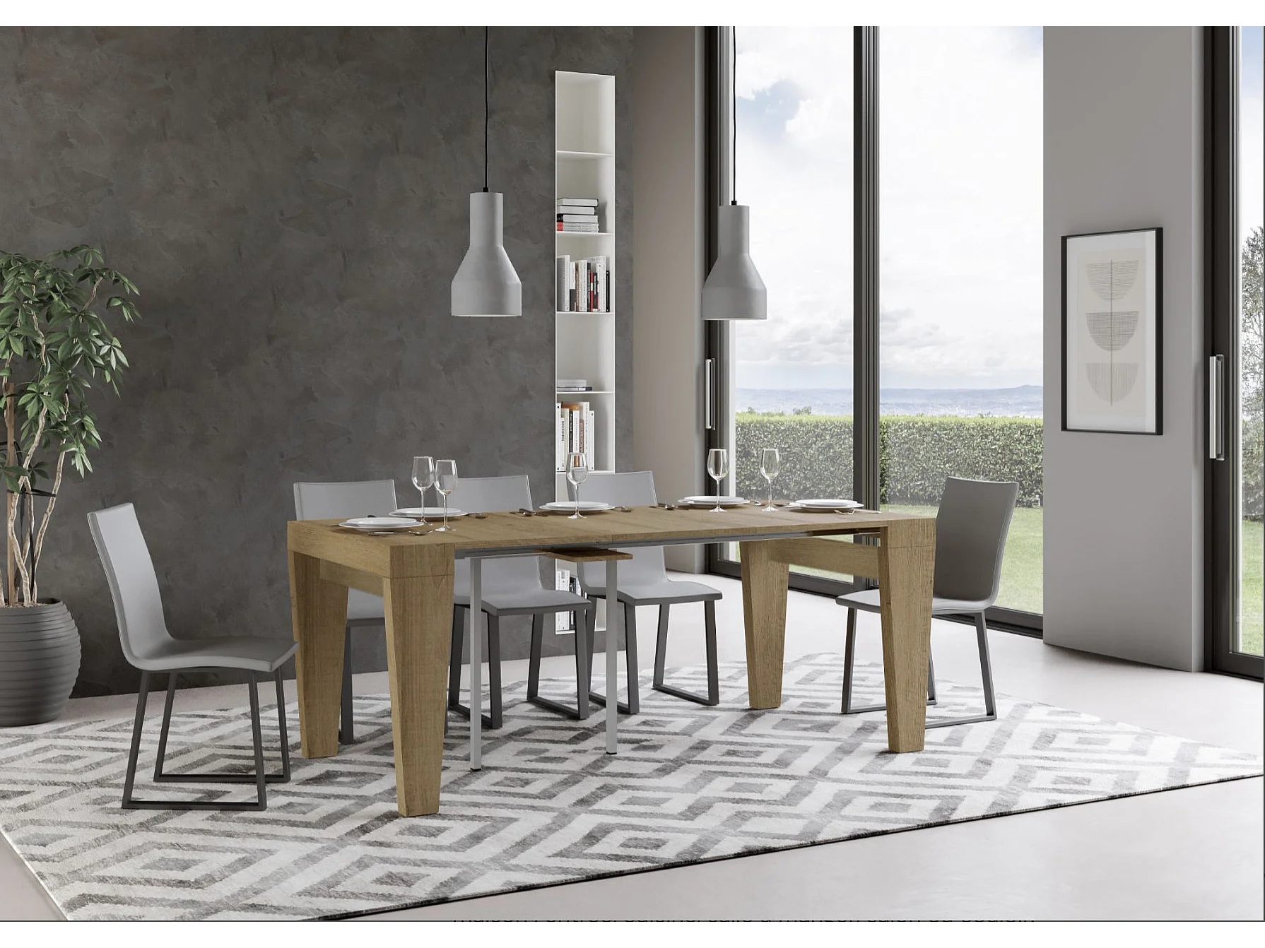Console extensible en bois Sambo 90x40-196 ou 90x40-300-Couleur Marron-Support 4 pieds-5 rallonges