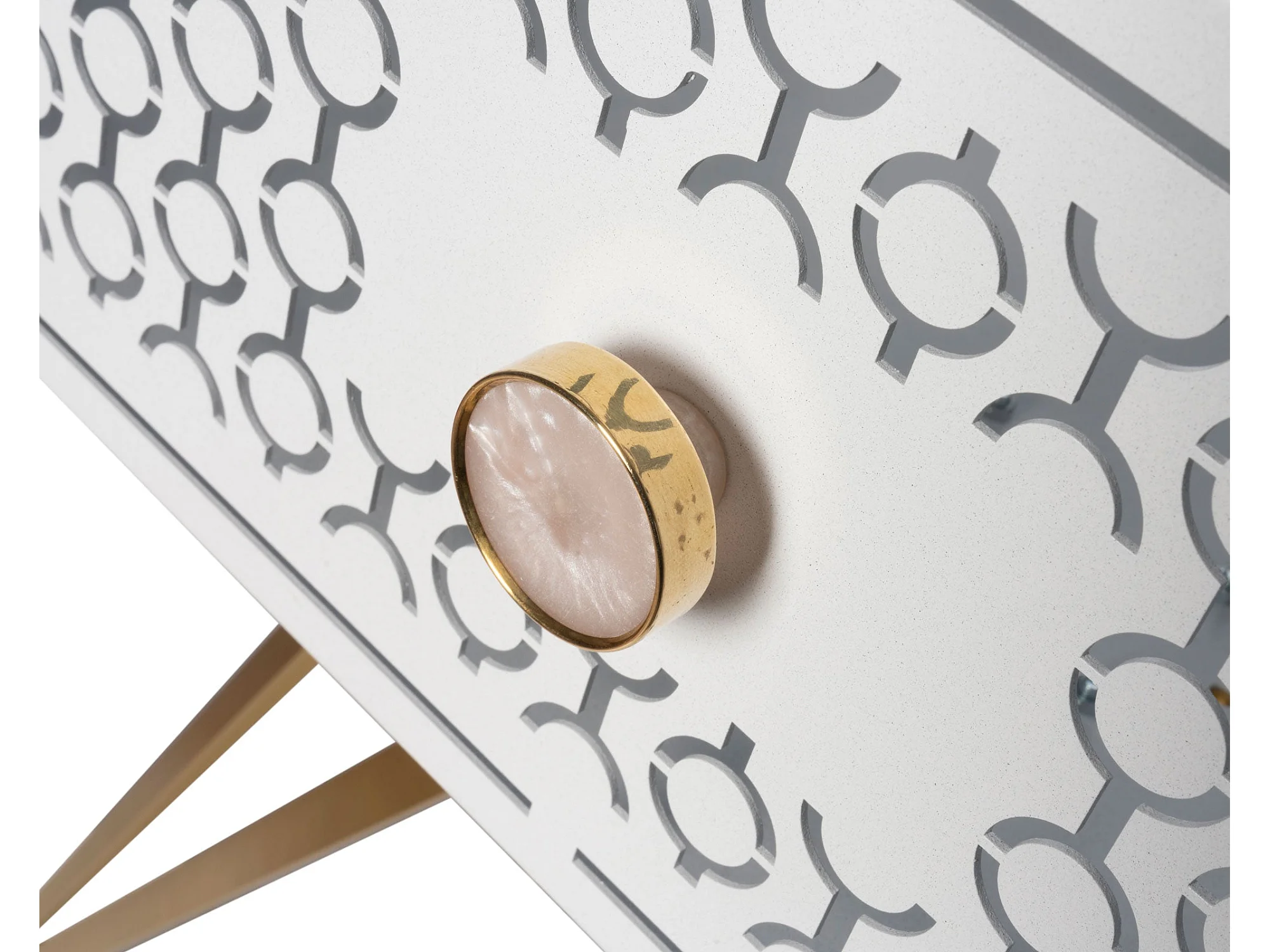 Console Mayfair 100x35x80 cm en fer, style glamour Regency, pieds dorés, tiroirs marbre blanc, sans compartiments, Made in Italy