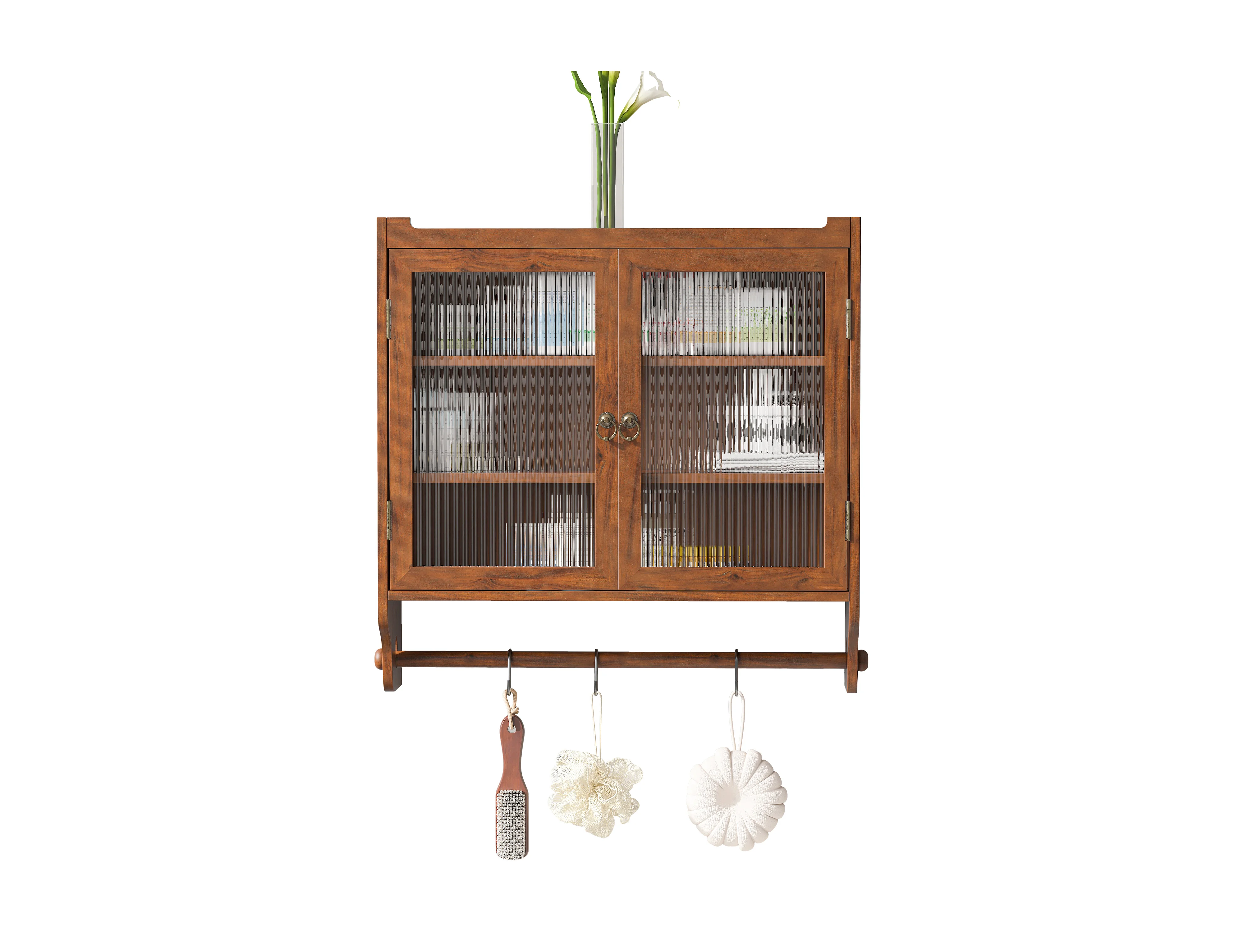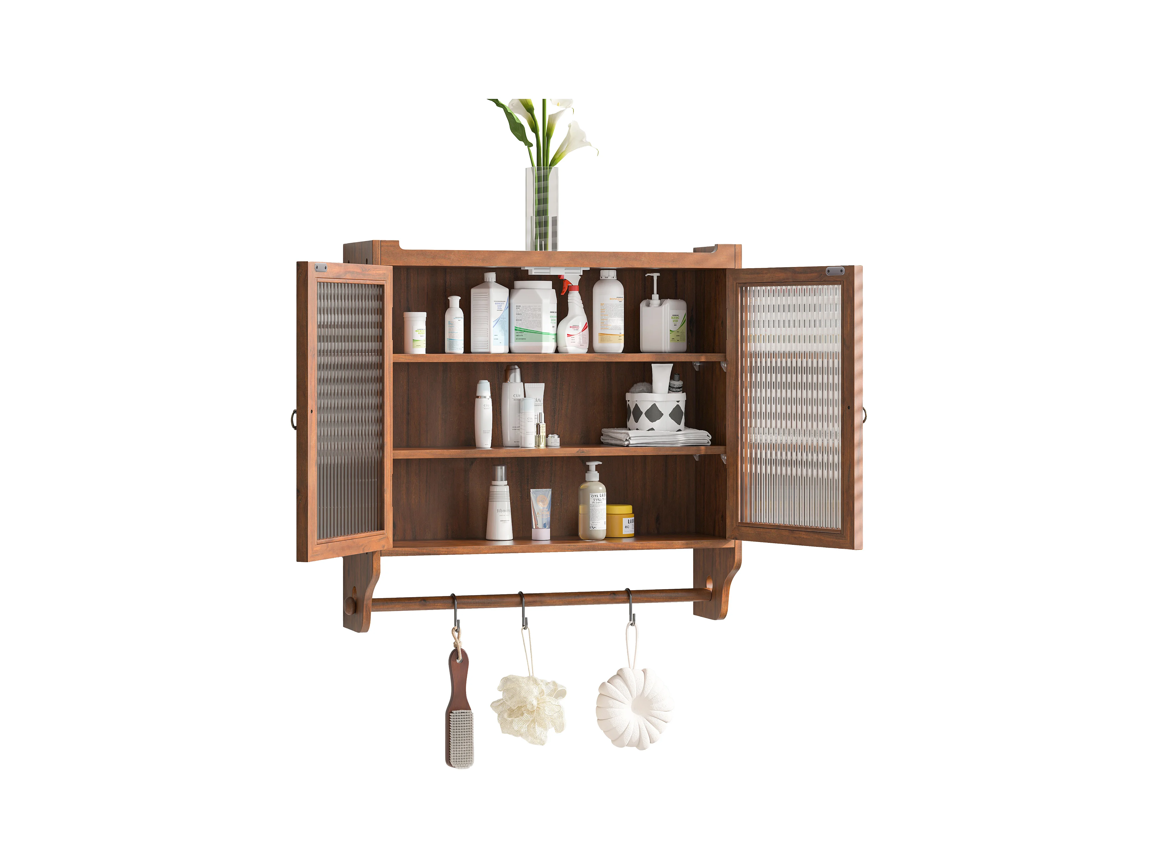 Console murale rectangulaire marron - Console murale avec rangement à trois niveaux et porte-serviettes - pour salle de bain et salle à manger