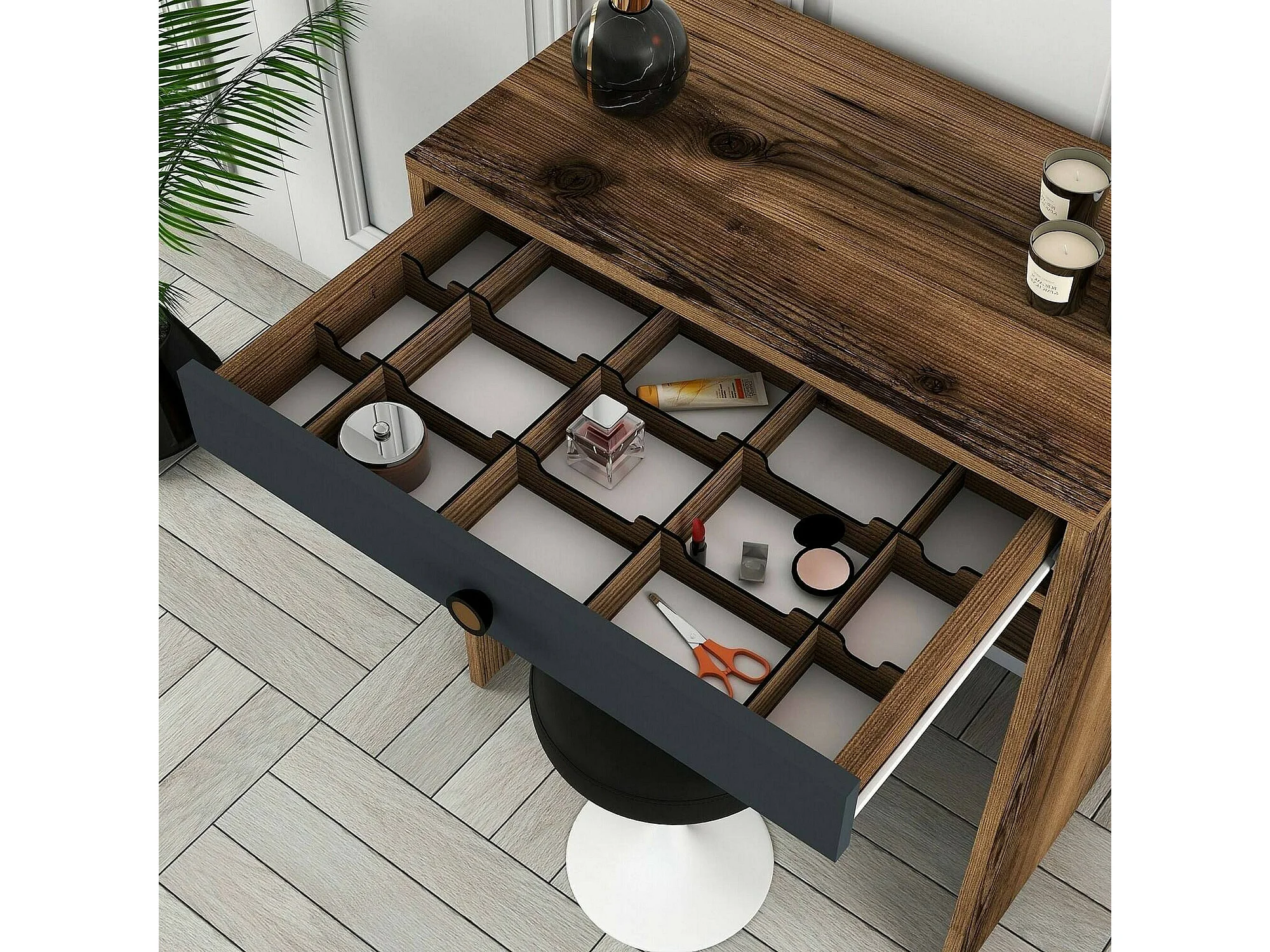 Console Ursa, Table polyvalente, Armoire de rangement, Bureau du couloir, 70x85 h40 cm, Noyer et Anthracite