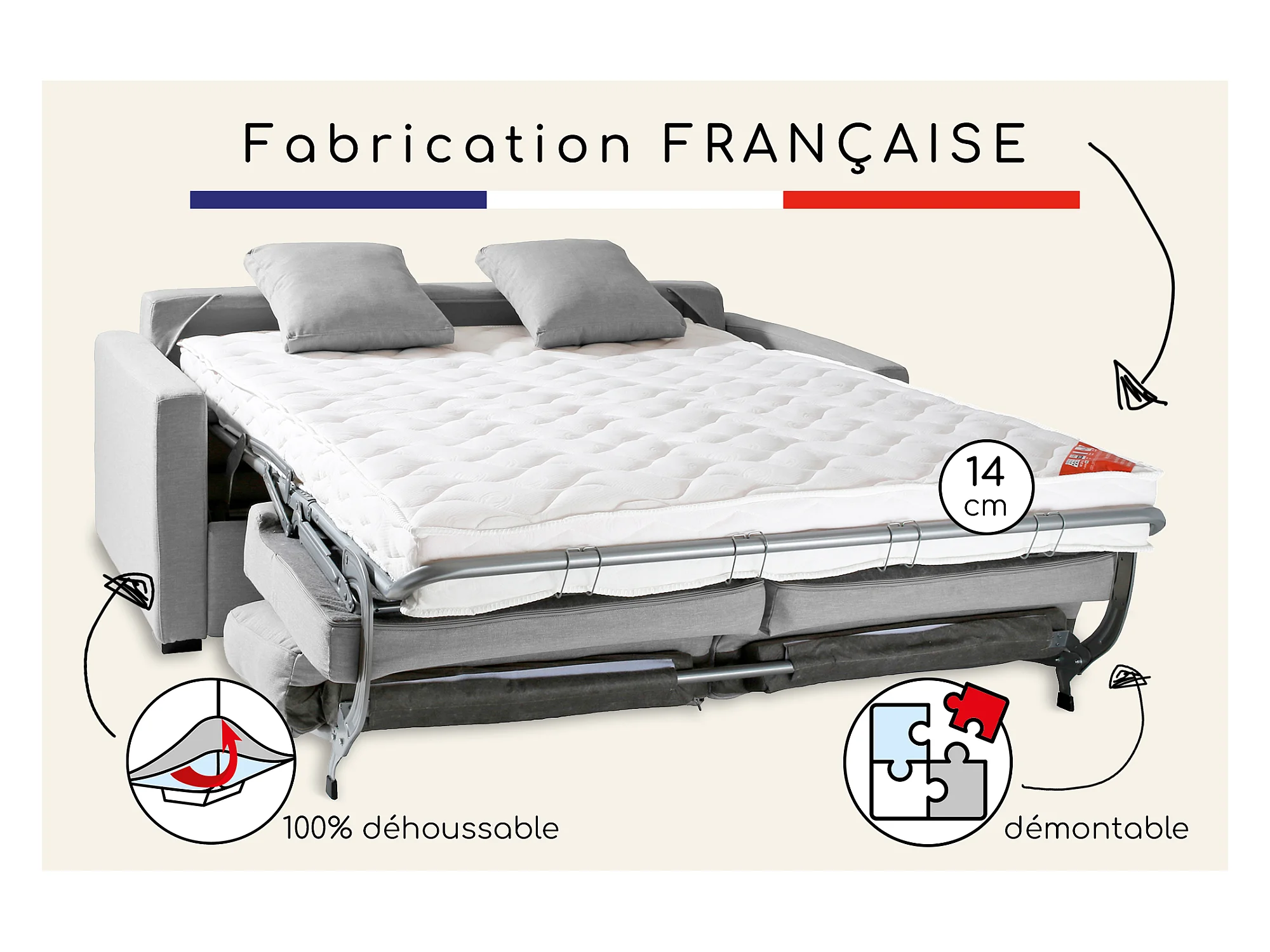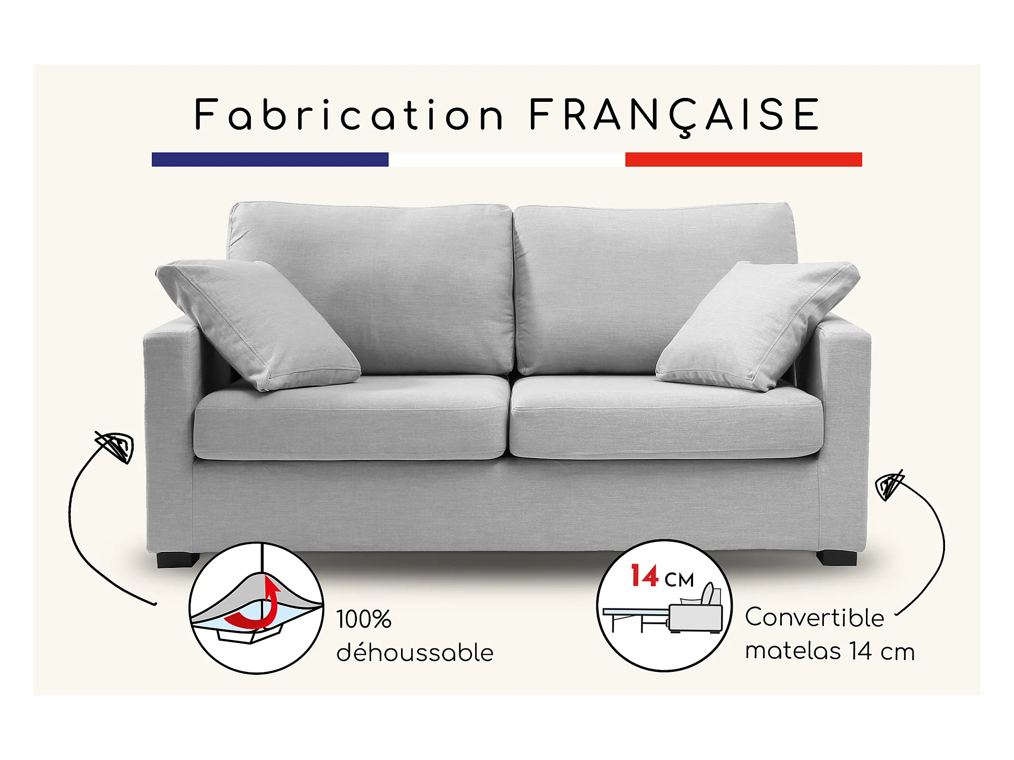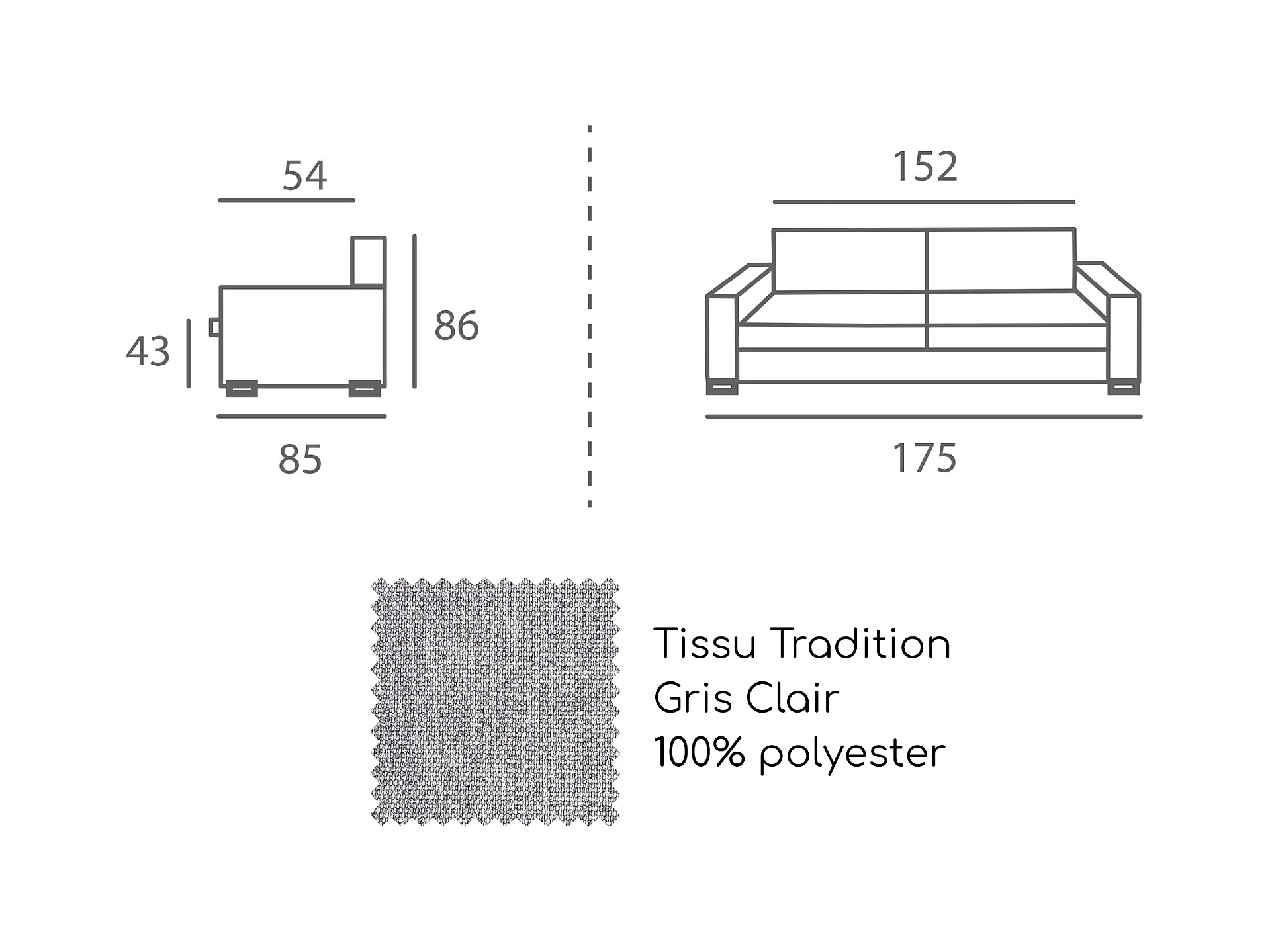 Convertible 14 cm HR 35kg/m³ canapé 3 pl LYS 185 cm tissu Tradition Gris Clair - Fab. France