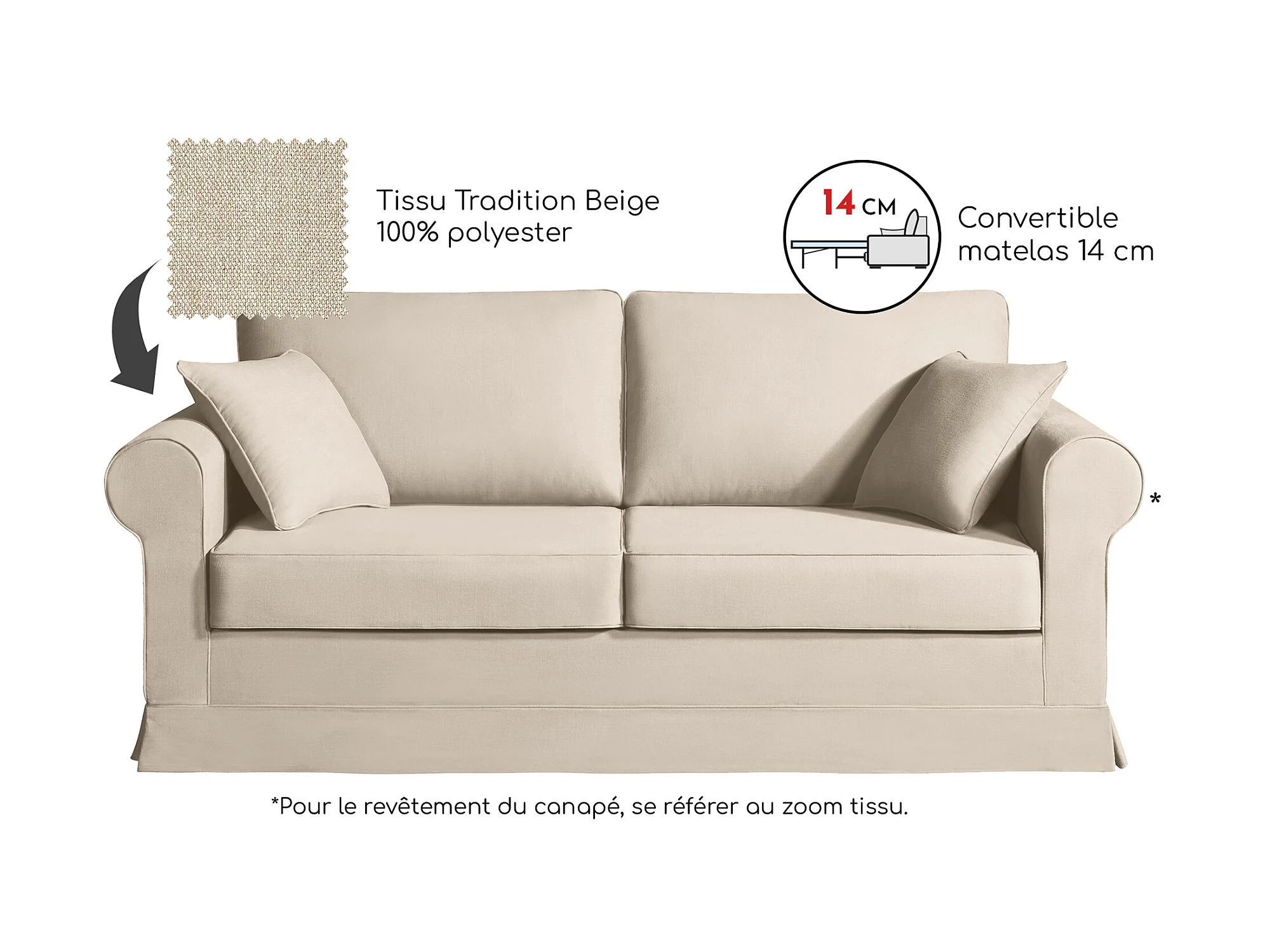Convertible 14 cm HR 35kg/m³ canapé 4 pl COLME 220 cm tissu Tradition Beige