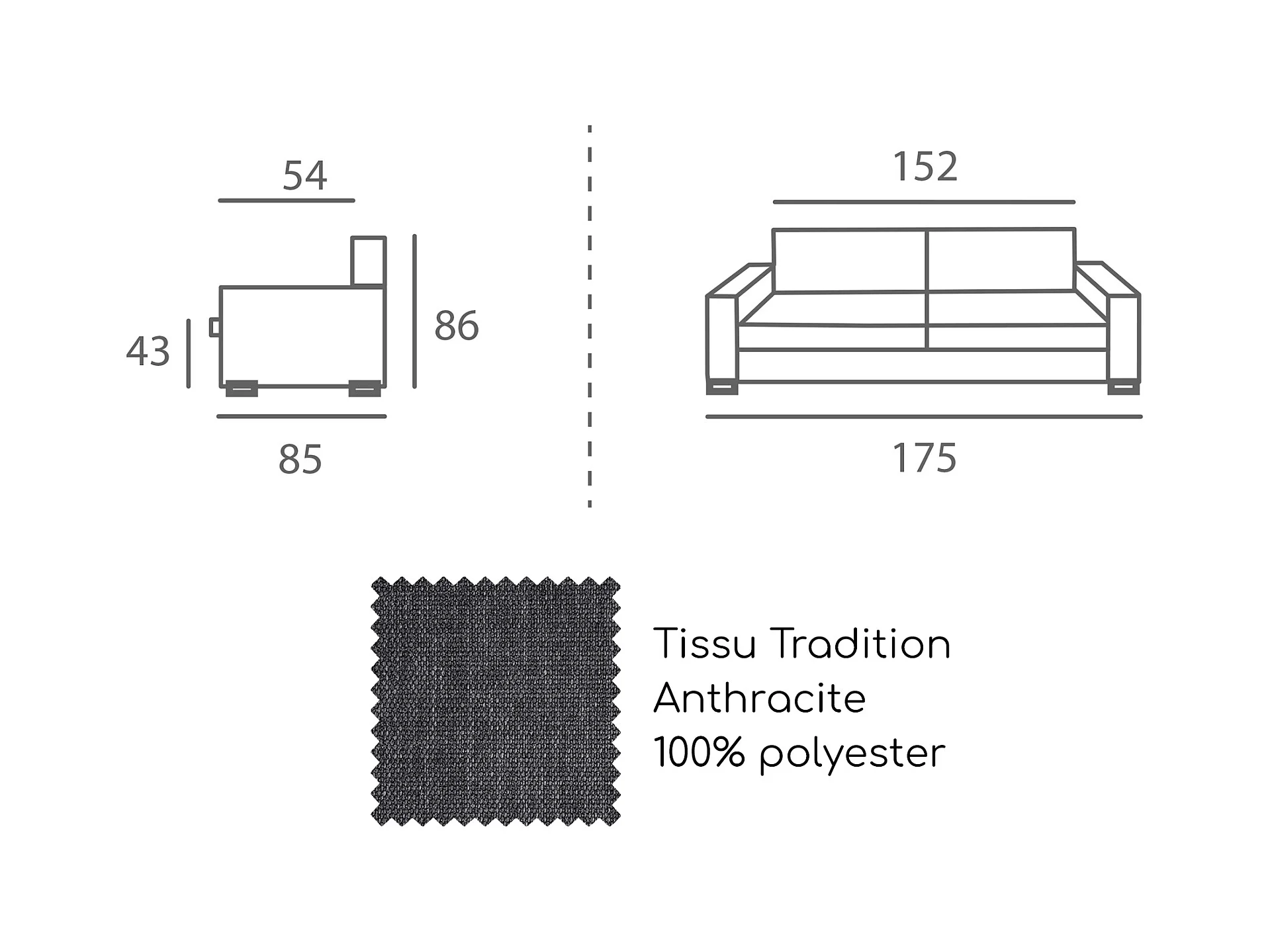 Convertible 6 cm lattes canapé 3 pl LYS 175 cm tissu Tradition Anthracite - Fab. France