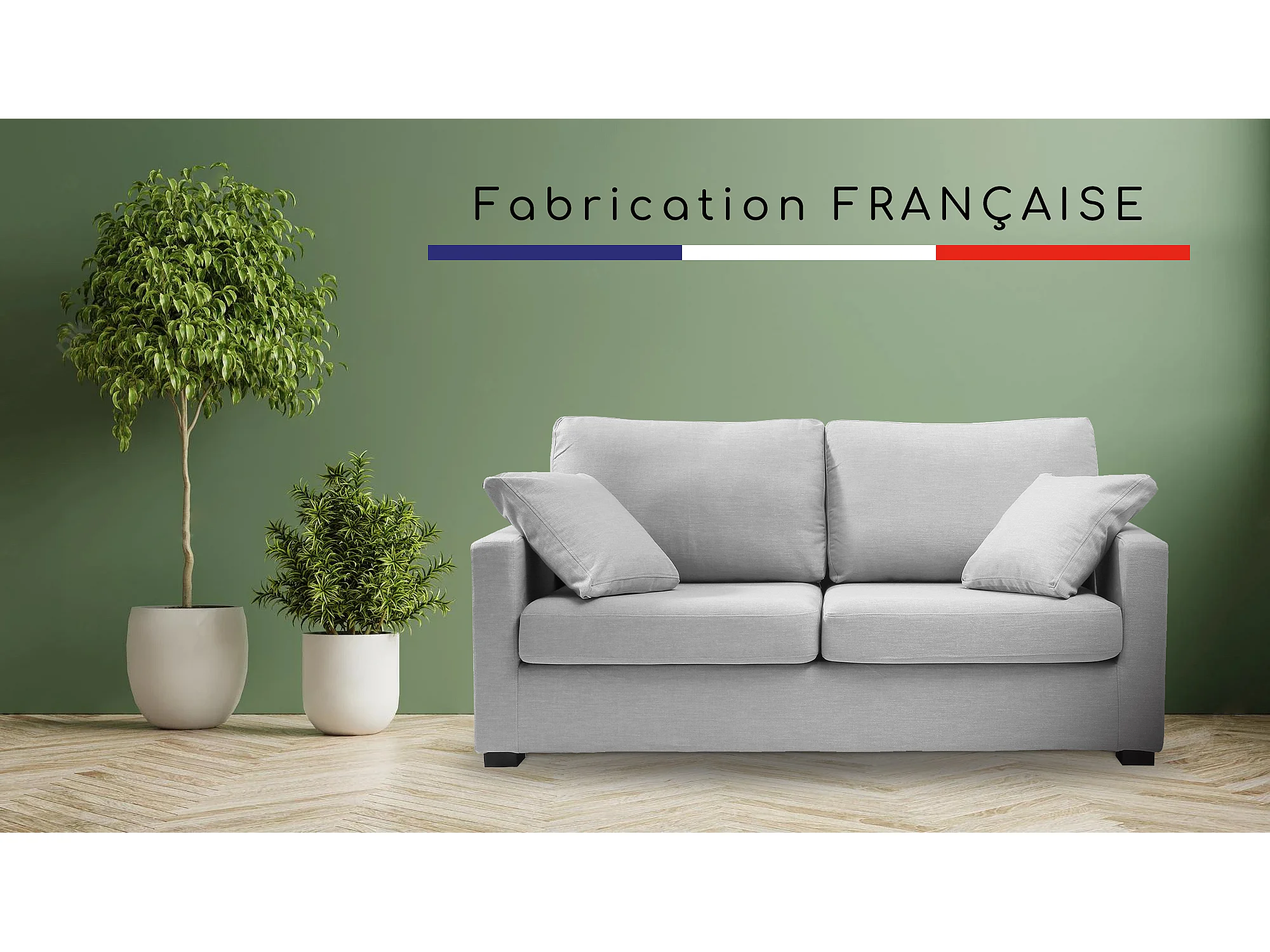 Convertible 6 cm lattes canapé 3 pl LYS 175 cm tissu Tradition Gris Clair - Fab. France