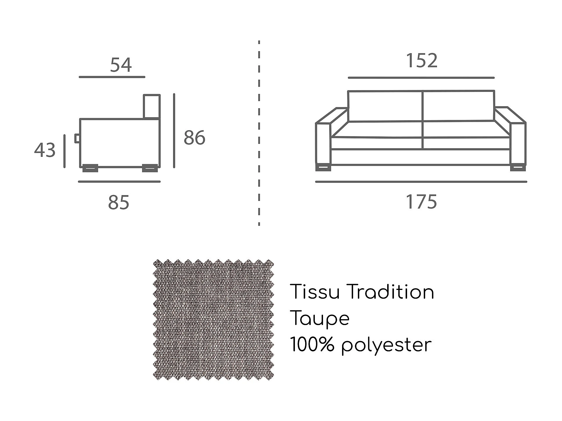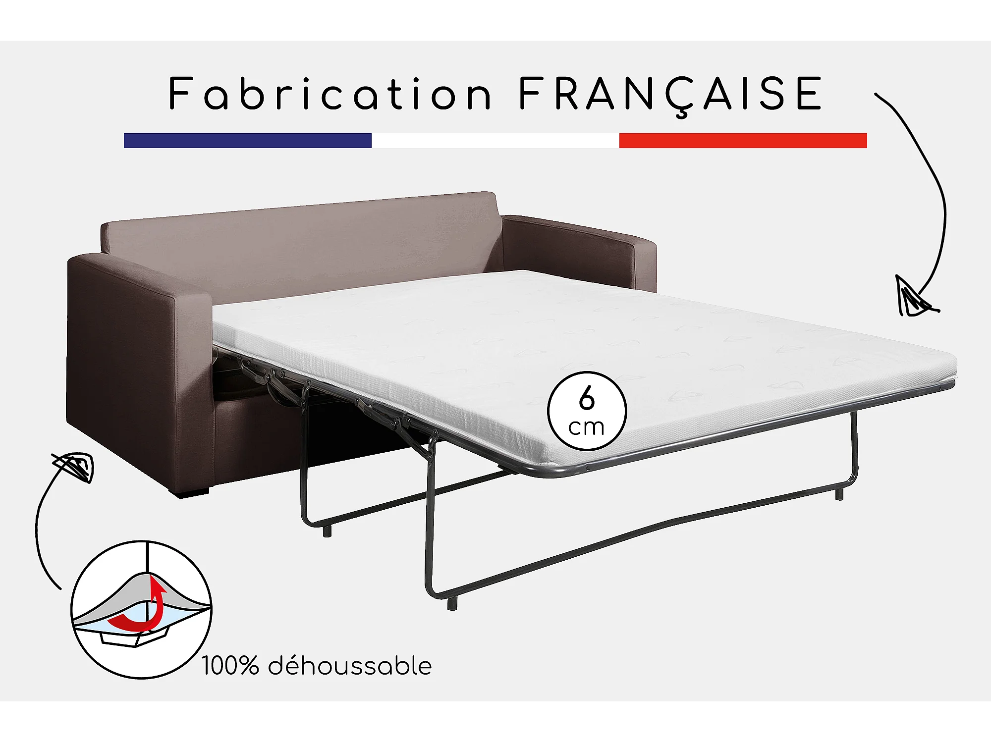 Convertible 6 cm lattes canapé 3 pl LYS 175 cm tissu Tradition Taupe - Fab. France