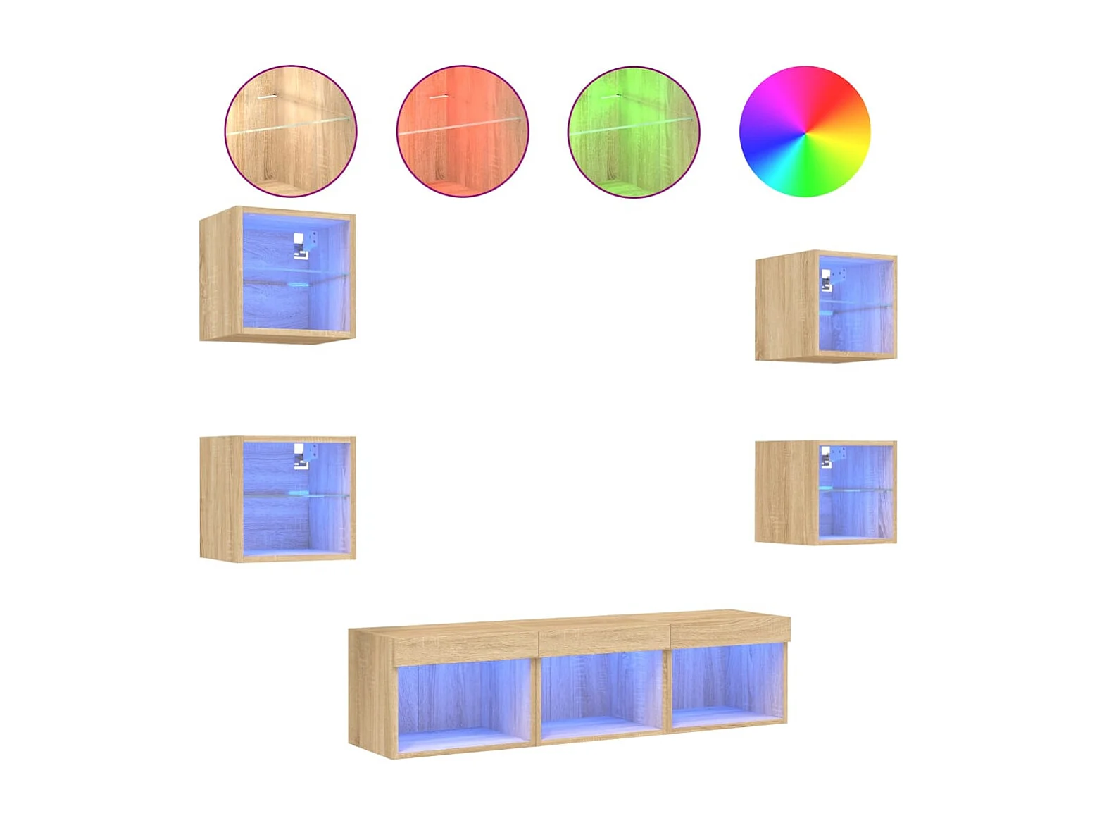 Coolgreany Unités murales TV avec LED 7 pcs chêne sonoma bois d'ingénierie