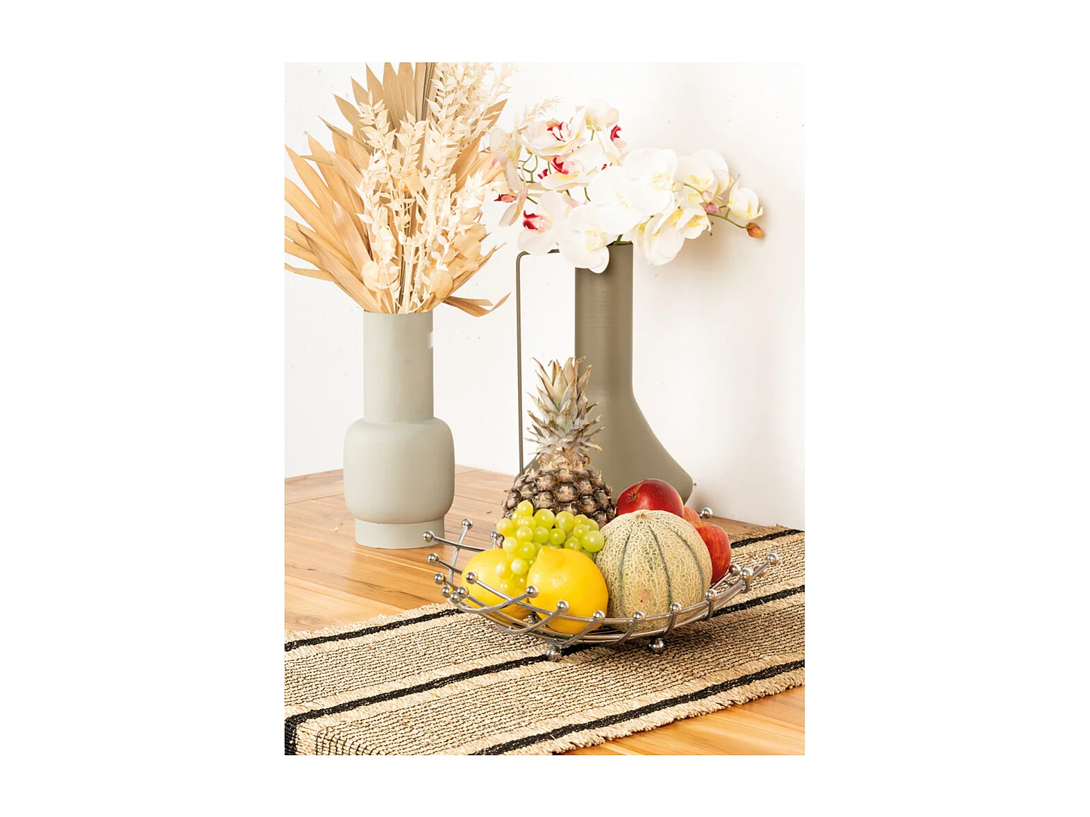 Corbeille à fruits ronde en métal Soleil argenté