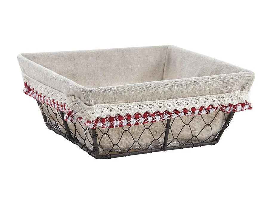 Corbeille carrée en grillage en métal finition rouillée avec doublure en jute