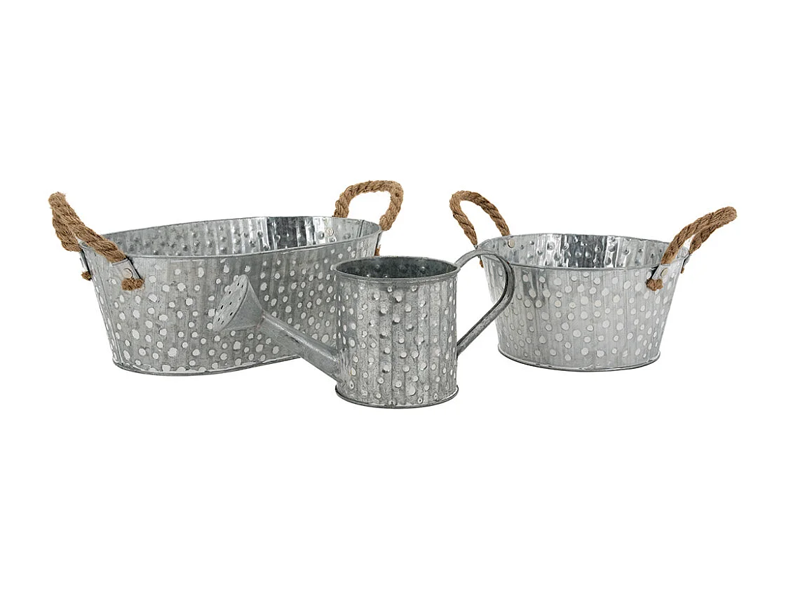 Set3 paniers jardinière jardin extérieur pot fleur métal gris 15-19-23cm