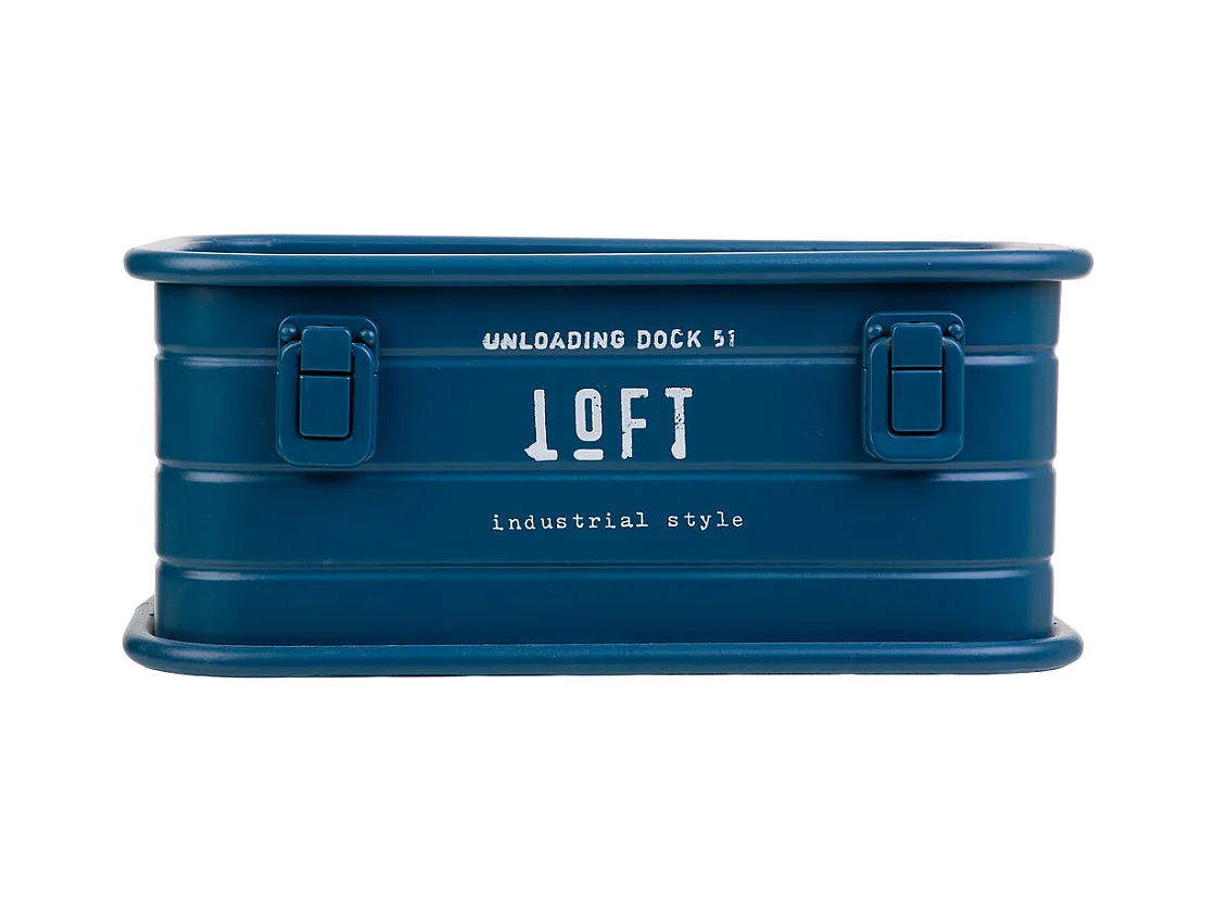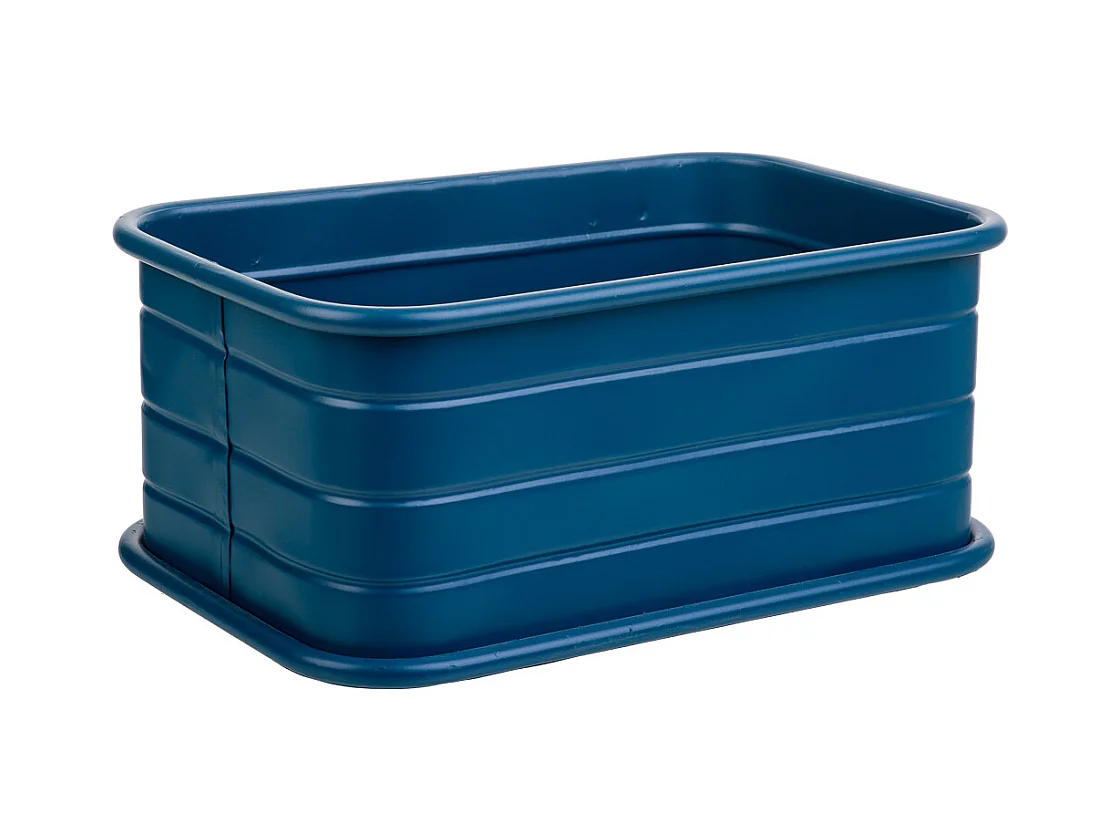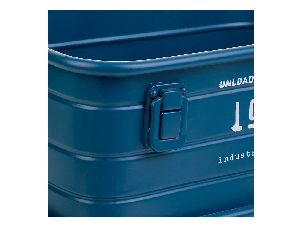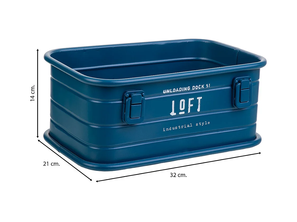 Corbeille rectangulaire en métal imprimé bleu 32x21x14