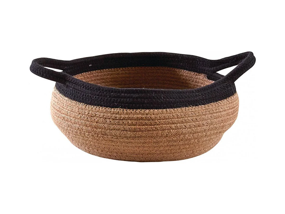 Corbeille ronde en jute naturelle et noire 2 anses