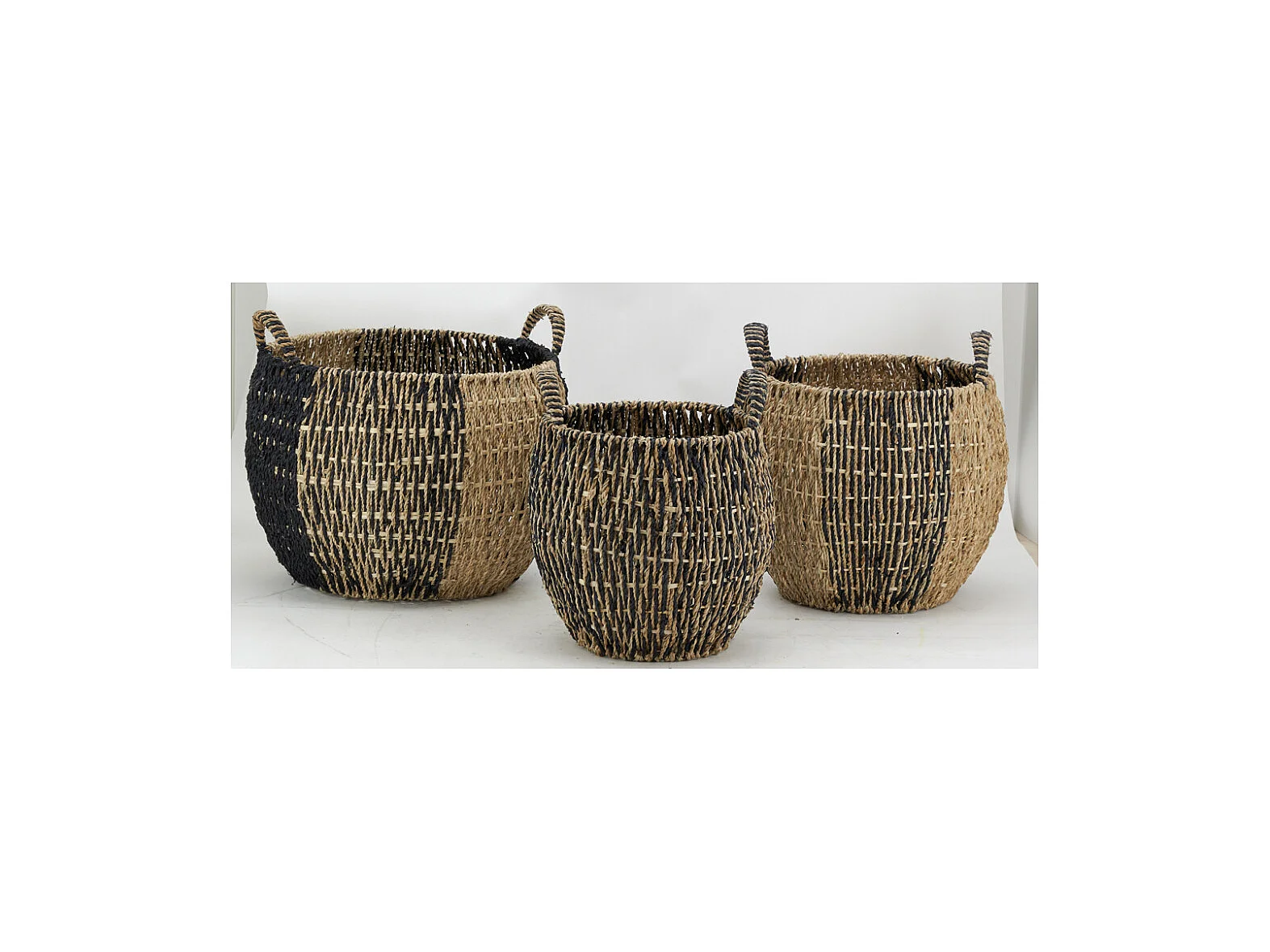 Corbeilles boules en jonc naturel et noir (lot de 3)