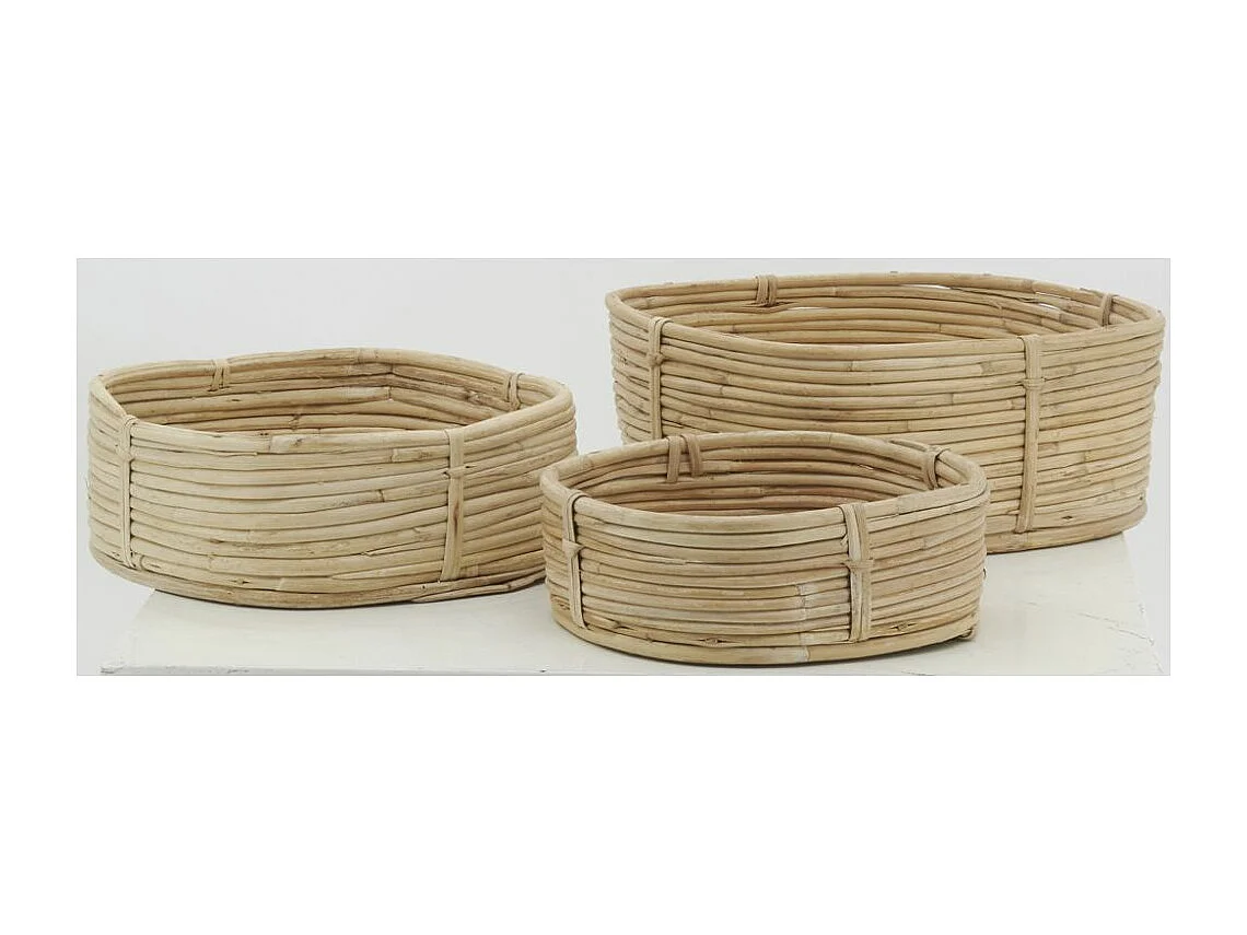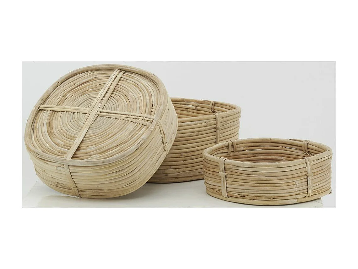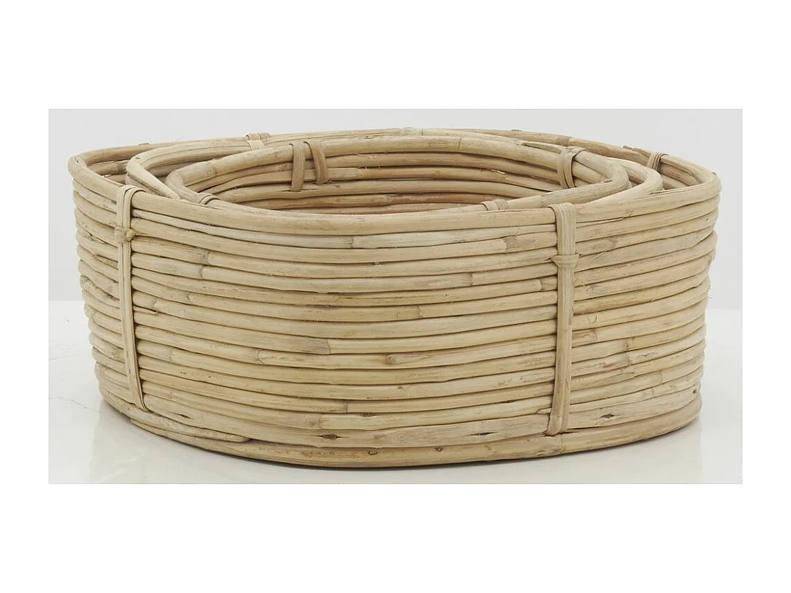 Série de 3 corbeilles rectangulaire en rotin naturel