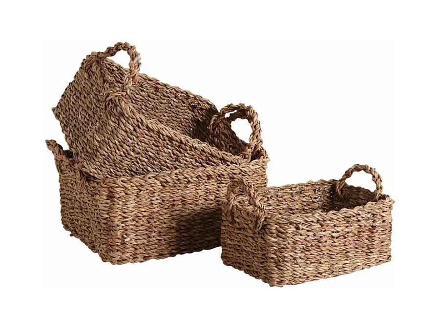 Corbeilles de rangement en jonc de mer tressé (Lot de 3)