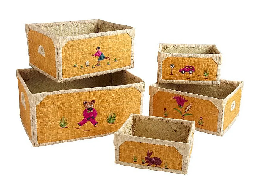 Corbeilles de rangement rectangulaires en rabane (lot de 5)