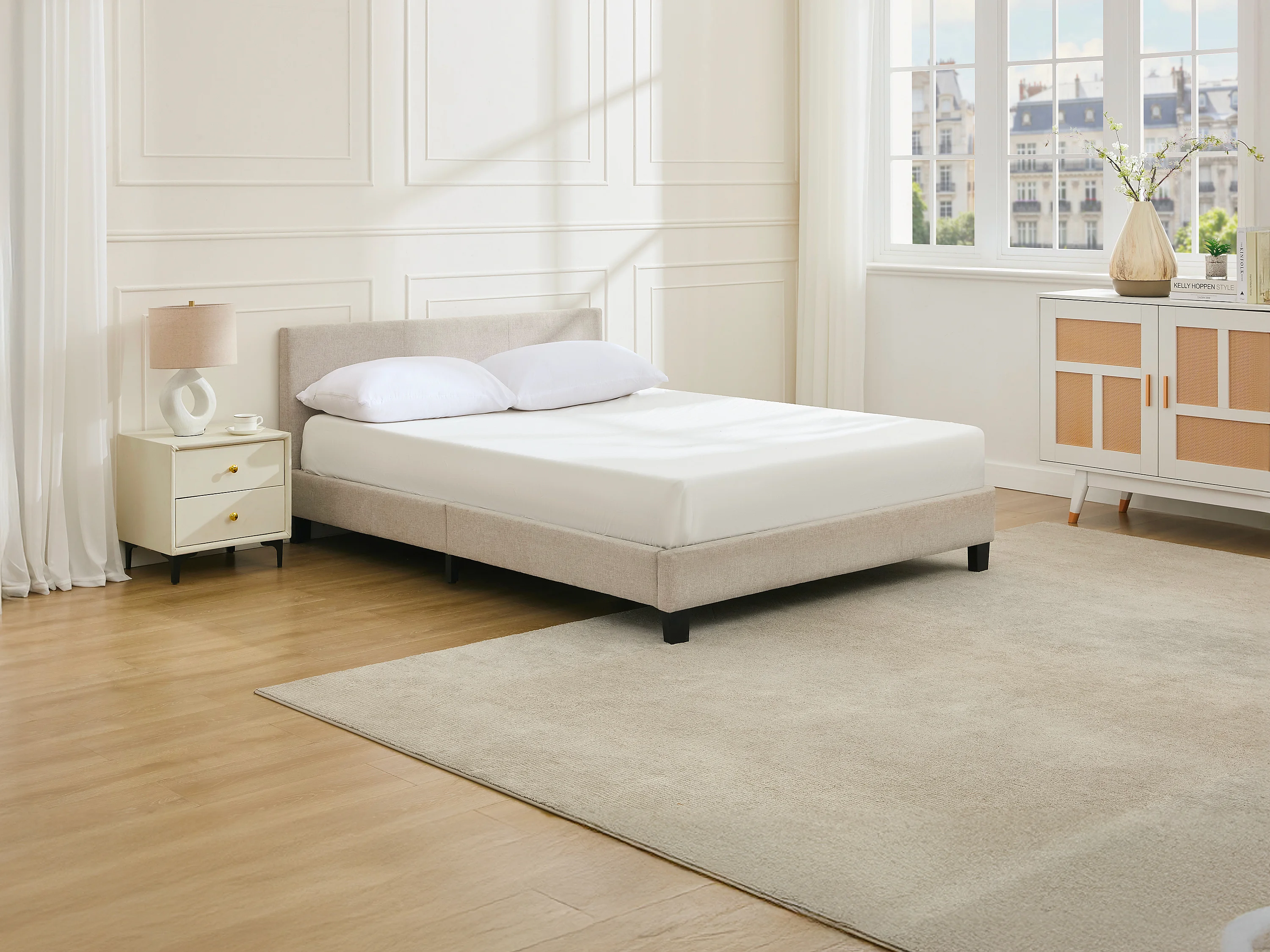 Lit 140 x 190 cm - Tissu - Beige + Matelas - CORNELIUS II