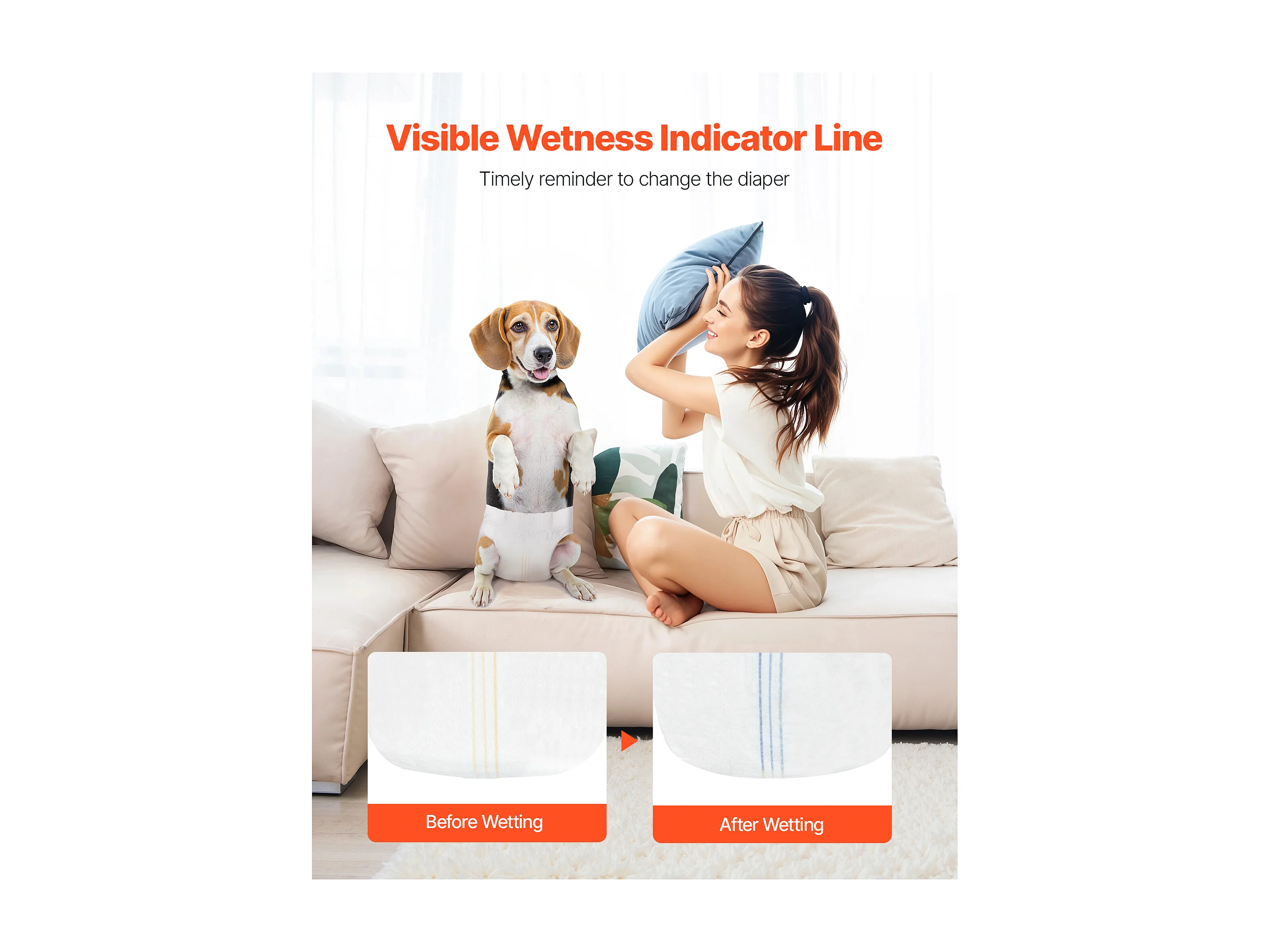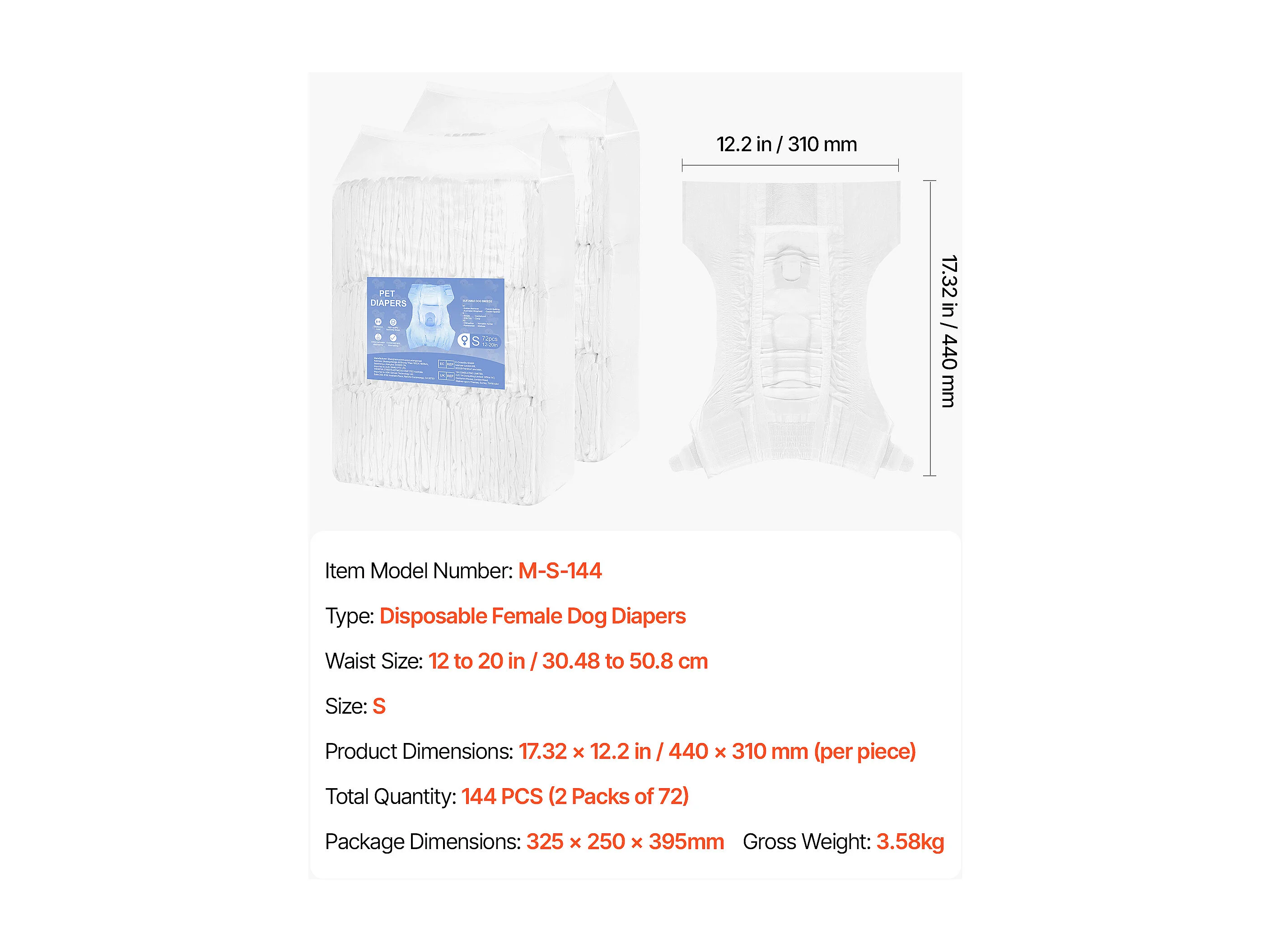 Couches Jetables SucceBuy pour Chiens Femelles, 144 Pièces, Couches pour Chiennes Super Absorbantes Anti-Fuites Taille S, pour Entraînement, 2 Lots de 72
