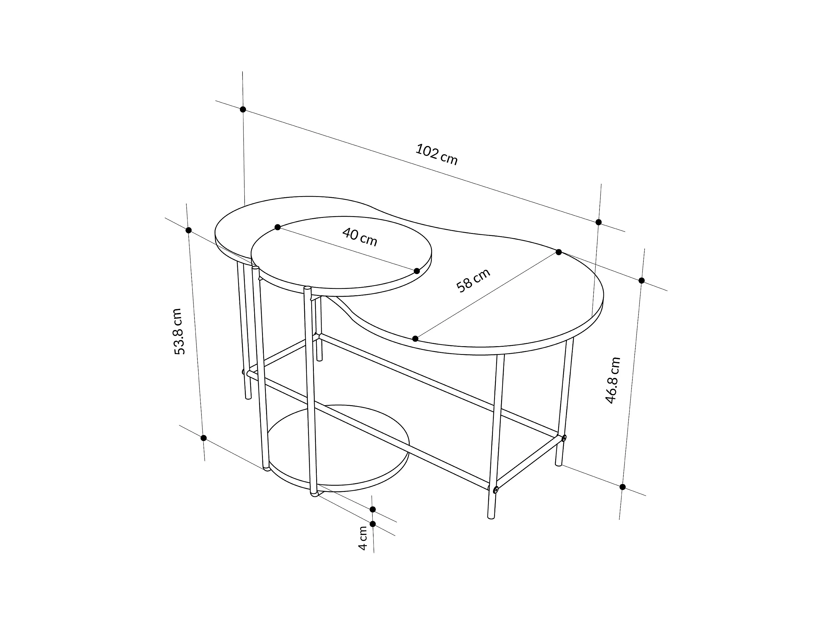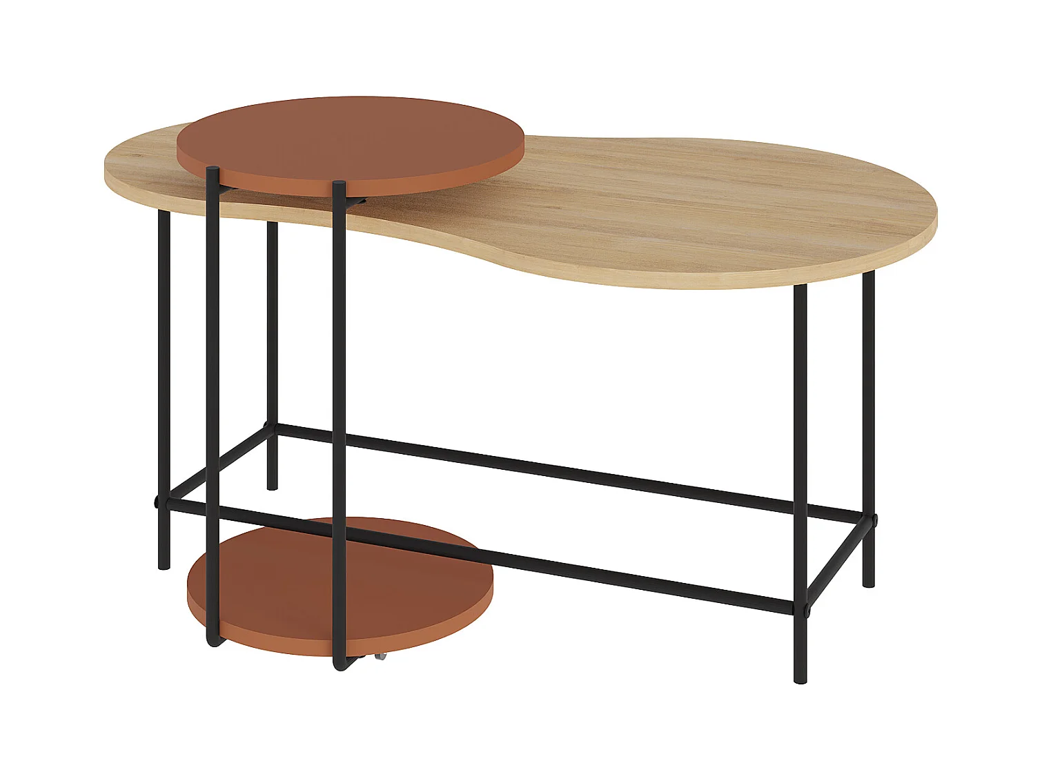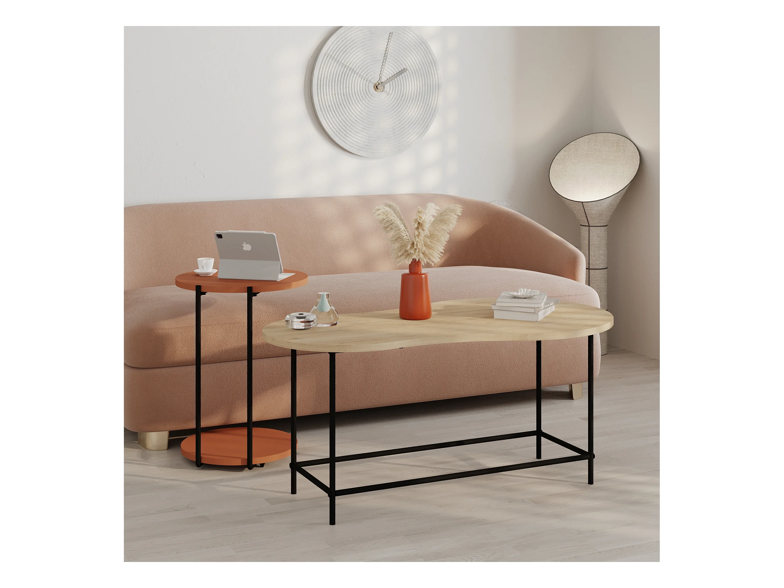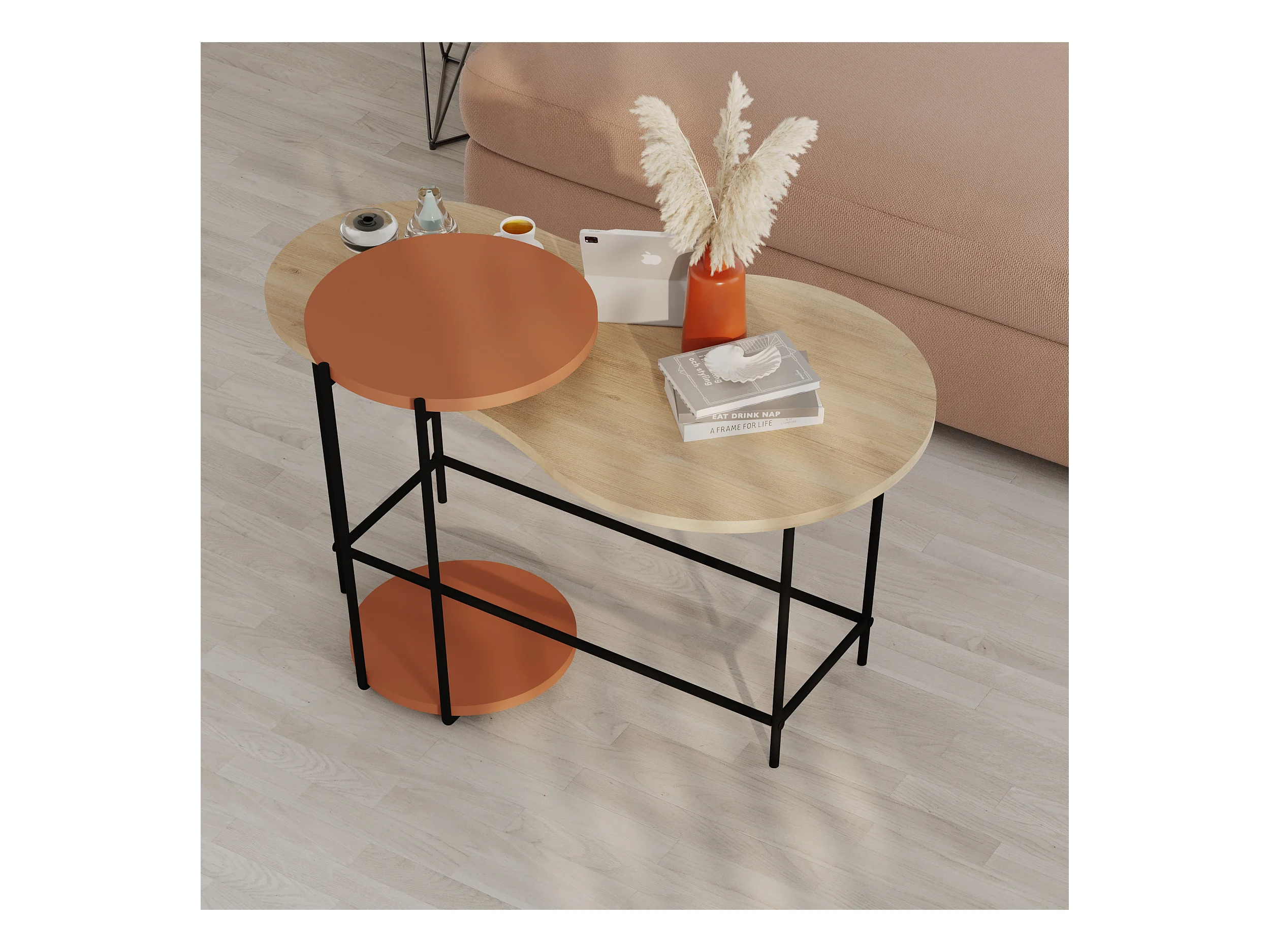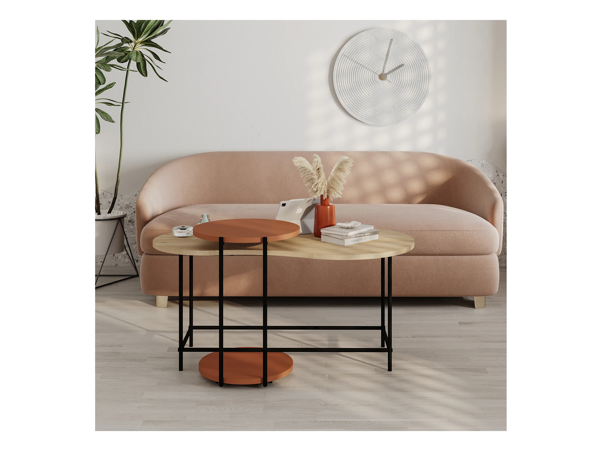 Decortie Chêne, Cannelle 65x102.5x53.8cm Tables gigognes 2 pièces Panneau de particules, Métal Table basse de rangement Cuddle