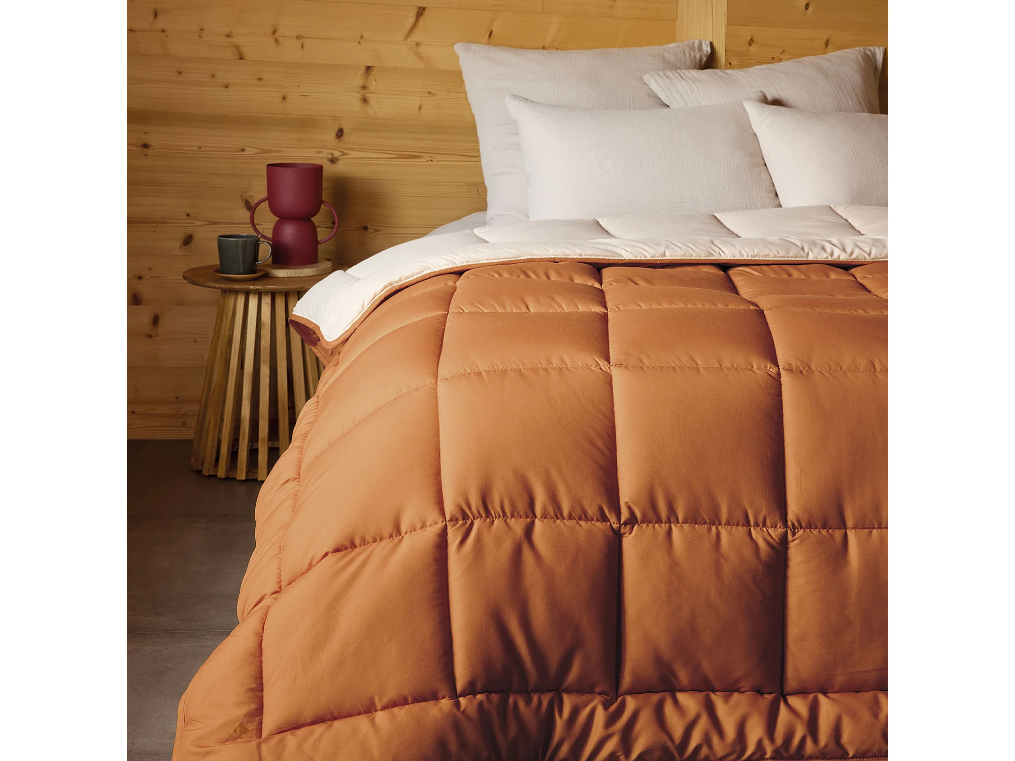Couette été 140x200 cm COCOON BICOLORE Marron Ocre/Galet garnissage fibre polyester 200 g/m2
