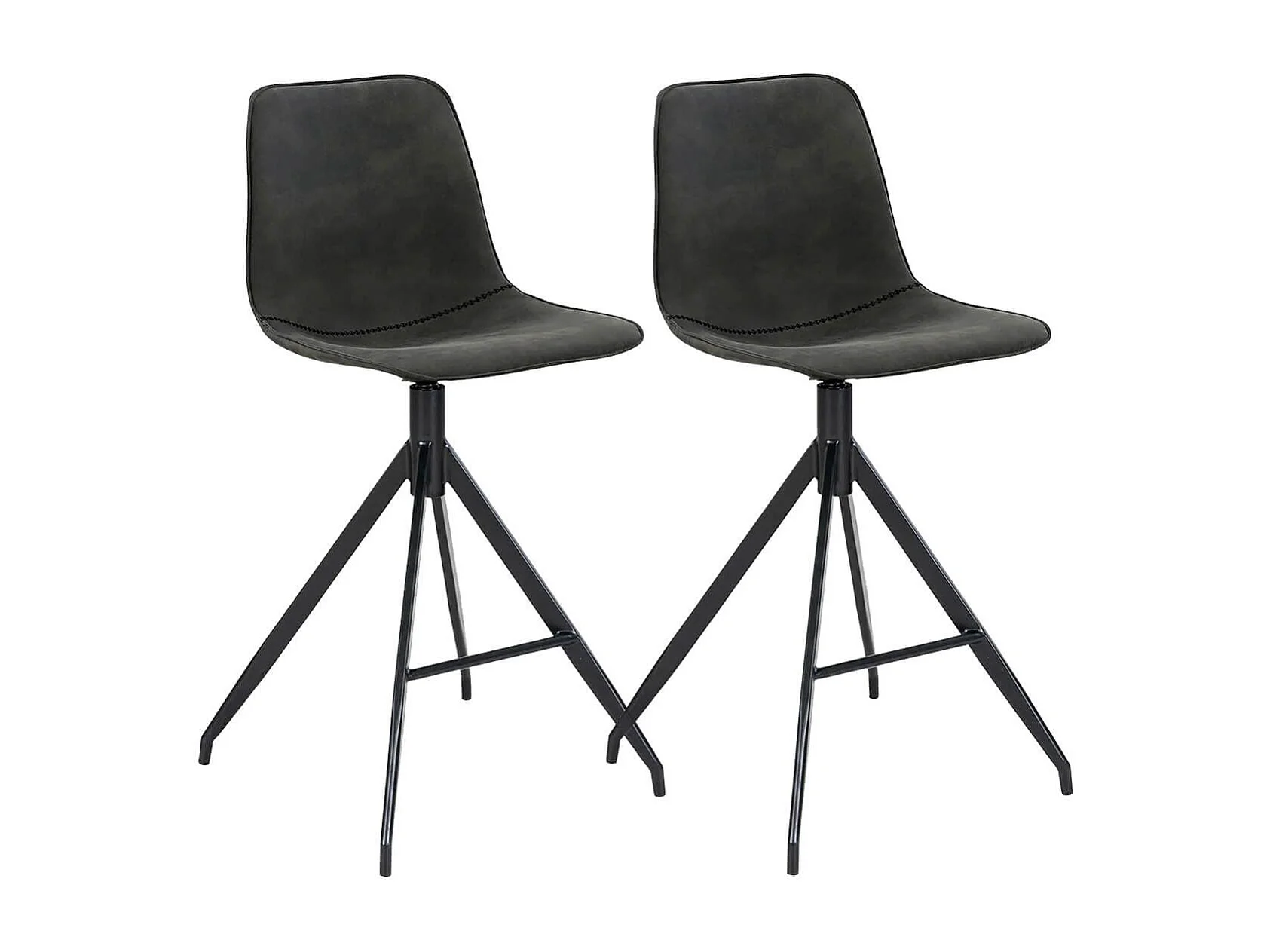 COUNTER - Lot de 2 Chaises Hautes Simili Cuir Gris Pied Pivotant Métal Noir